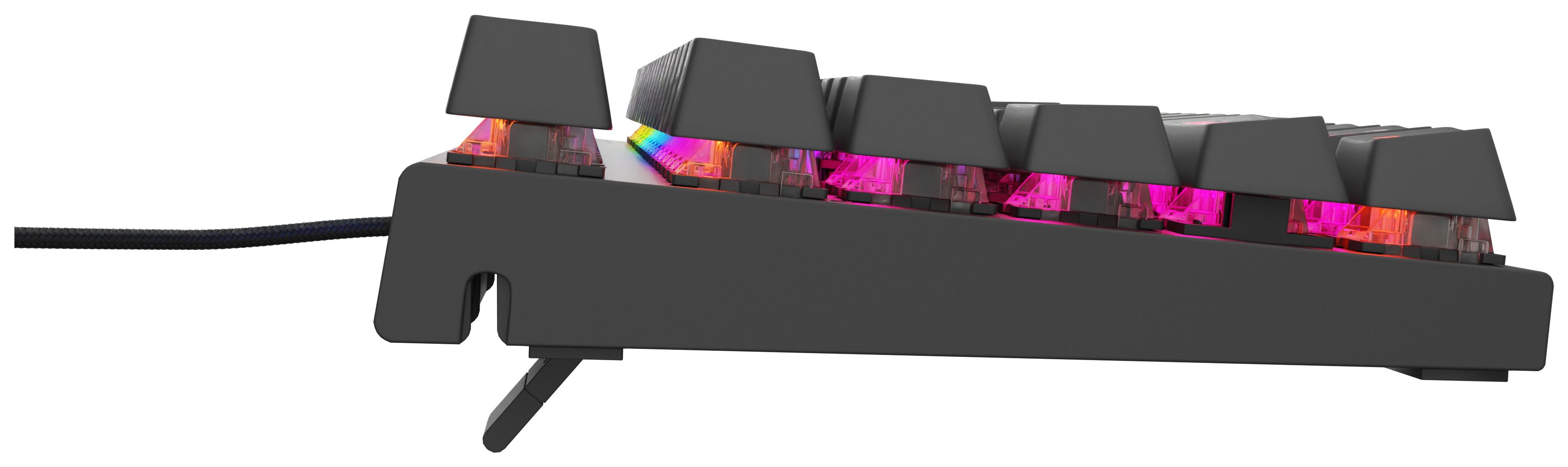 GENESIS Thor 303 TKL. Tastatur Formfaktor: Tenkeyless (80 - 87 %). Tastatur-Stil: Gerade. Übertragungstechnik: Kabelgebunden, Geräteschnittstelle: USB, Tastatur-Switch: Mechanischer Switch, Tastaturaufbau: QWERTZ, Tastatur - Tastenanzahl: 88. Typ der Hintergrundbeleuchtung: RGB-LED. Kabellänge: 1,8 m. Empfohlene Nutzung: Gaming. Produktfarbe: Schwarz