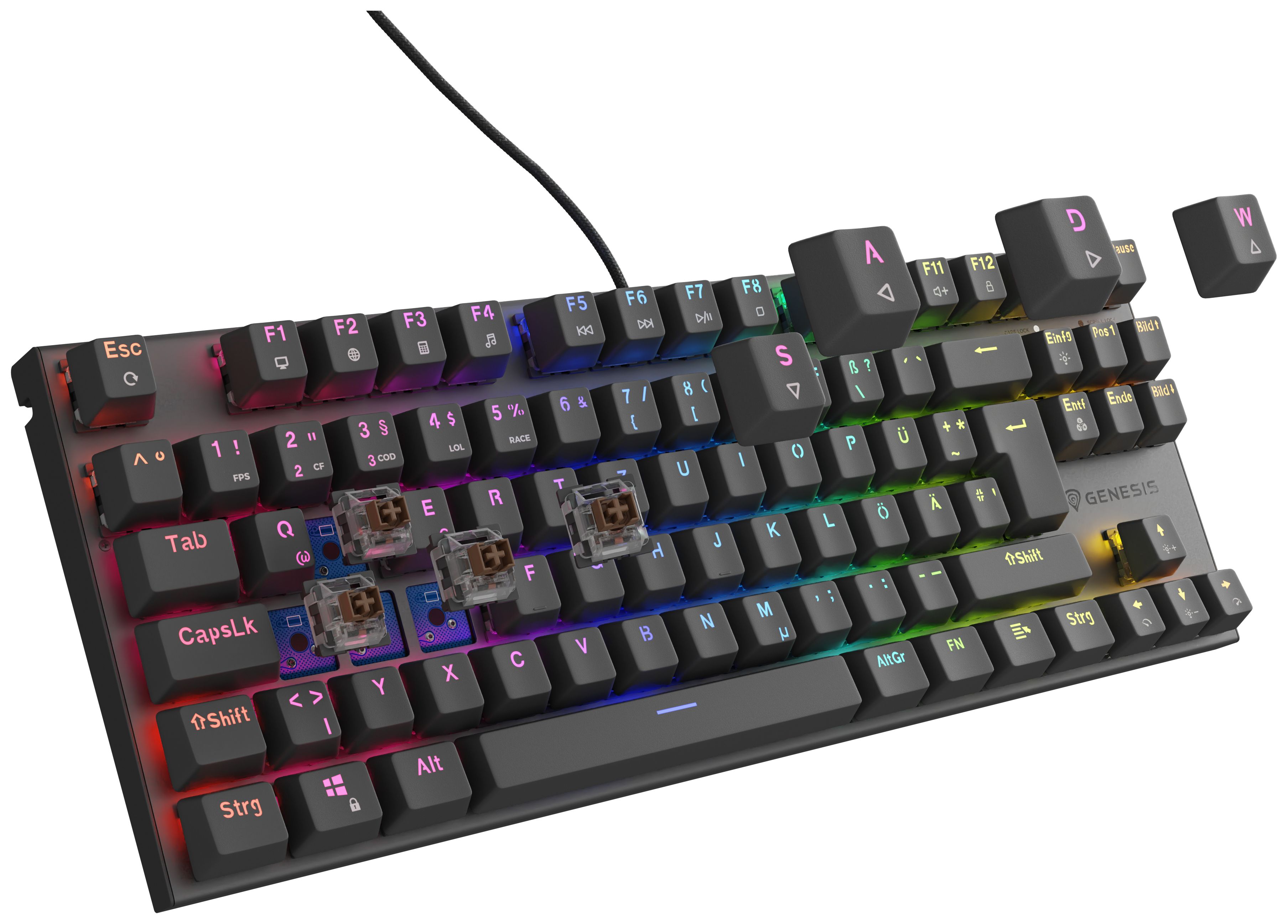 GENESIS Thor 303 TKL, Kabelgebunden, USB, Mechanischer Switch, QWERTZ, RGB-LED, Schwarz