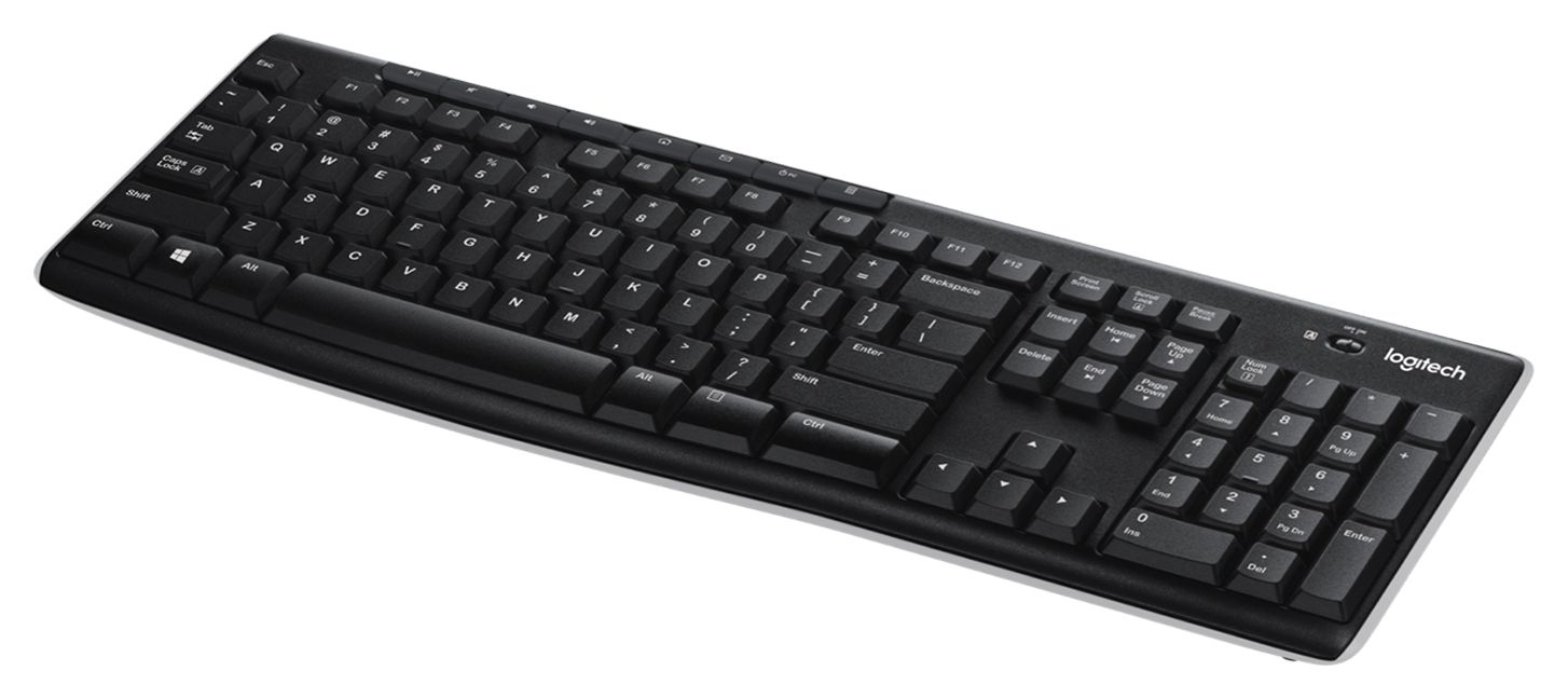 Logitech K270. Tastatur Formfaktor: Volle Größe (100%). Tastatur-Stil: Gerade. Übertragungstechnik: Kabellos, Geräteschnittstelle: RF Wireless, Tastaturaufbau: QWERTZ. Produktfarbe: Schwarz