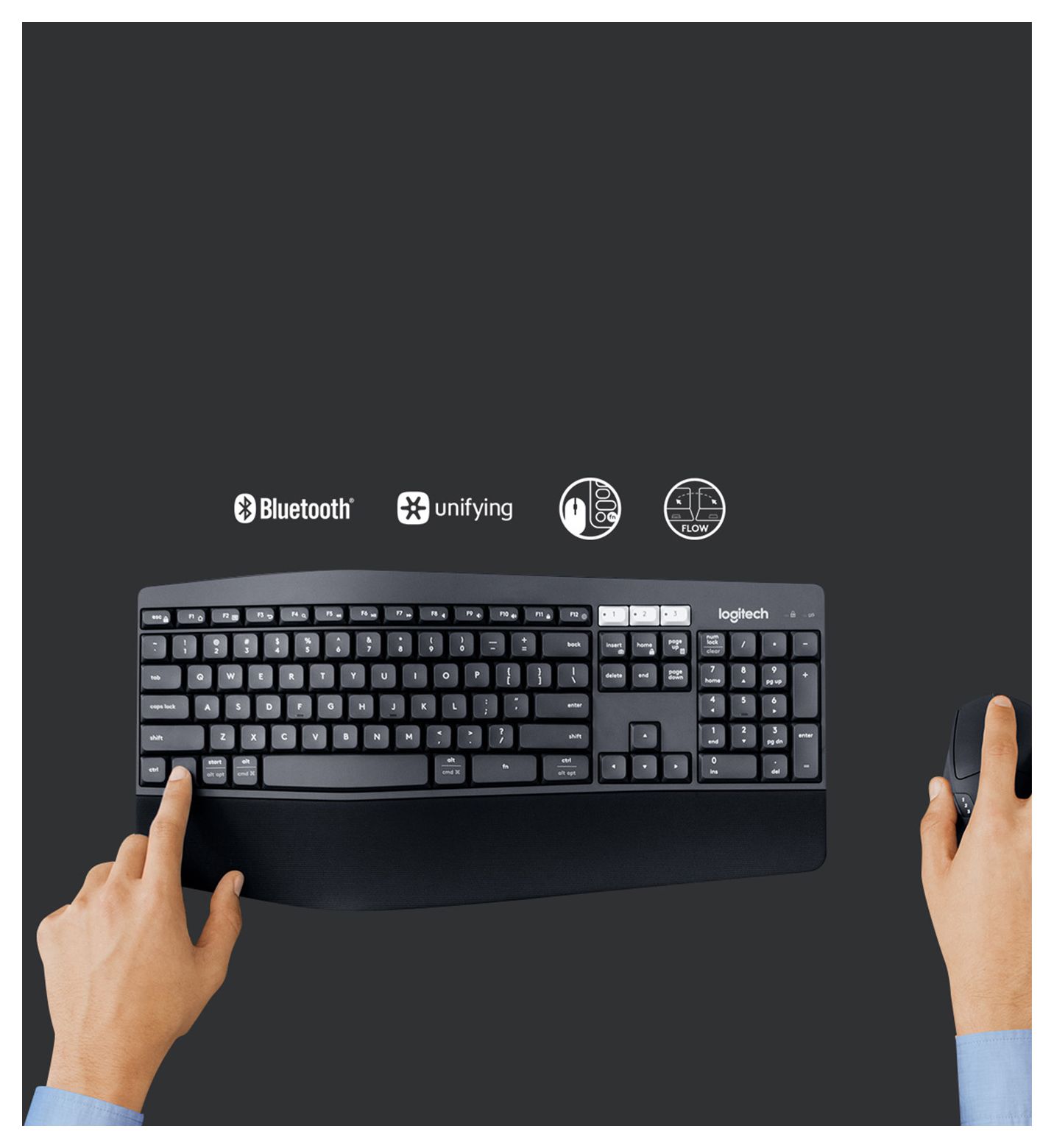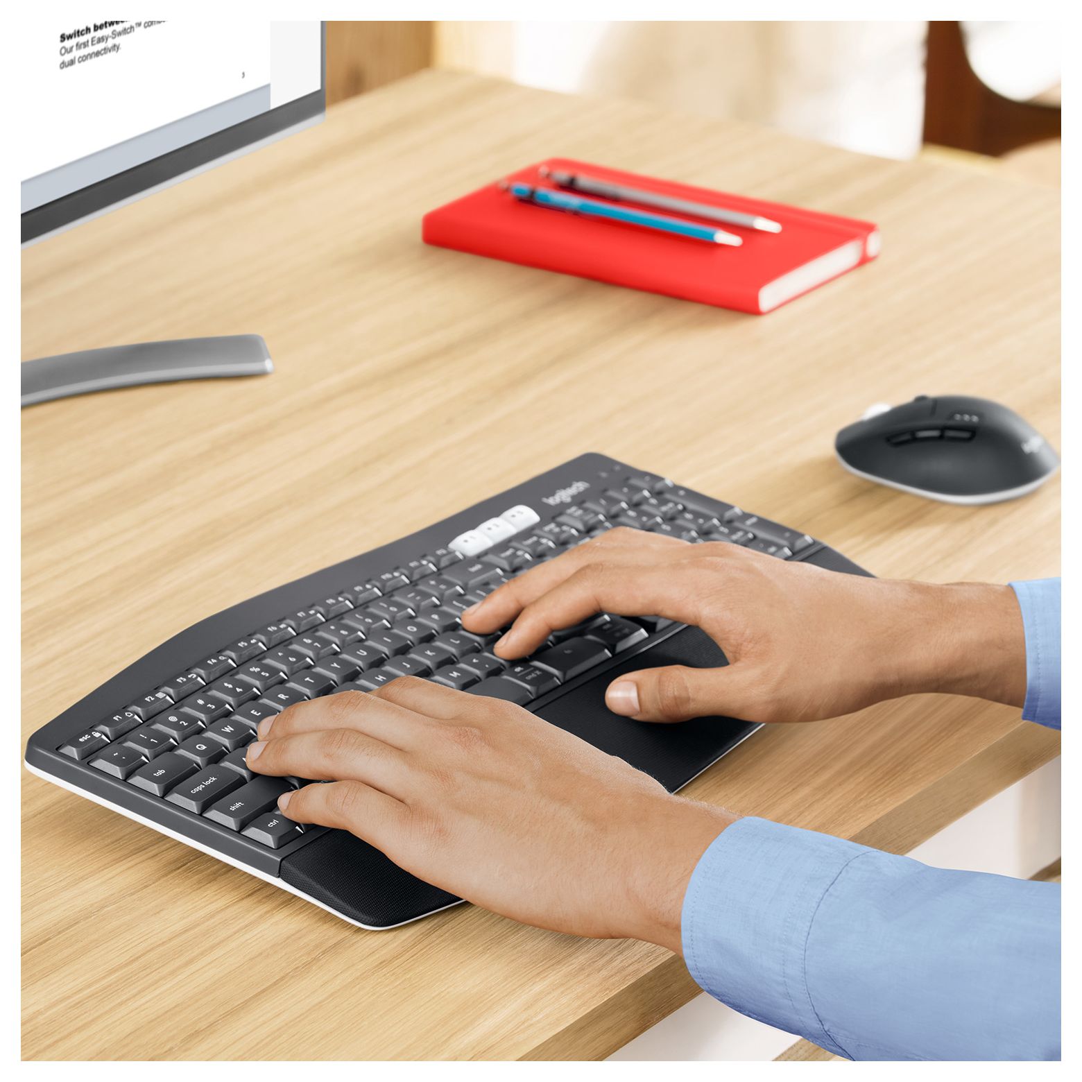 Erleben Sie Komfort und Produktivität auf völlig neuem Niveau mit dem leistungsstarken MK850 Performance Set. Dank gepolsterter Handballenauflage und geschwungen geformter Tastatur und Maus erleben Sie höchsten Komfort beim Arbeiten. Sie können von der Tastatur und von der Maus aus den Bildschirm wechseln und reibungslos an verschiedenen Geräten arbeiten.