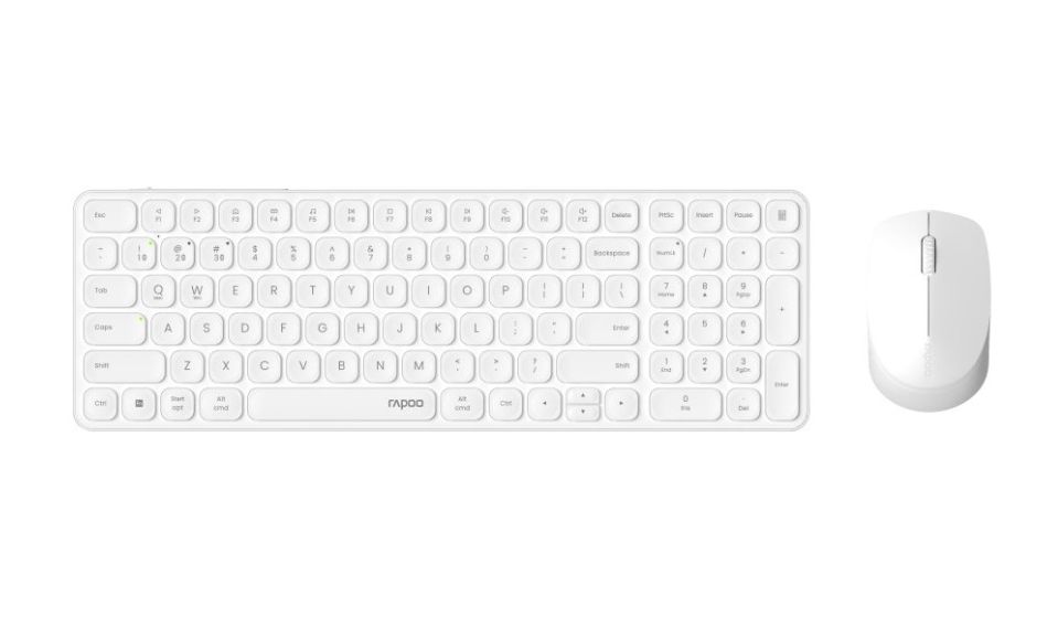 Rapoo 9710M. Tastatur-Stil: Gerade. Übertragungstechnik: Kabellos, Geräteschnittstelle: RF Wireless + Bluetooth, Tastaturaufbau: QWERTZ, Tastatur - Tastenanzahl: 99, Empfohlene Nutzung: Büro. Produktfarbe: Weiß. Maus enthalten
