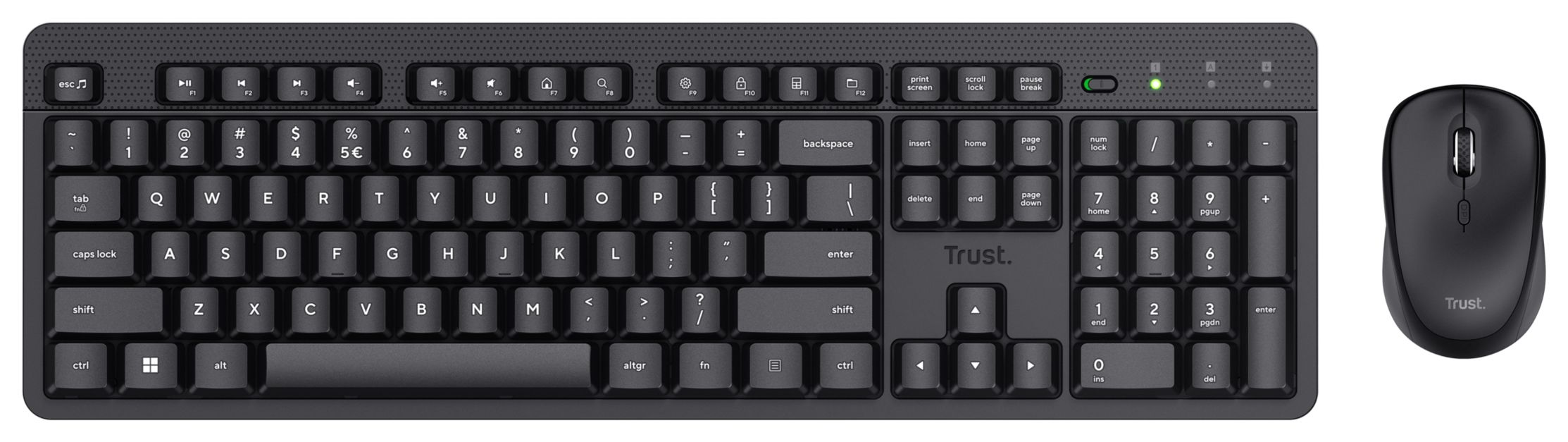 Mit dieser Tastatur können Sie viel mehr als nur schreiben. Sie hat gut zugängliche Medientasten und Tastenkürzel, damit Sie mit einem einzigen Knopfdruck alles im Griff haben. Außerdem verfügt die Tastatur über einen praktischen Ein-/Aus-Schalter, mit dem Sie so viel Akkulaufzeit wie möglich sparen!