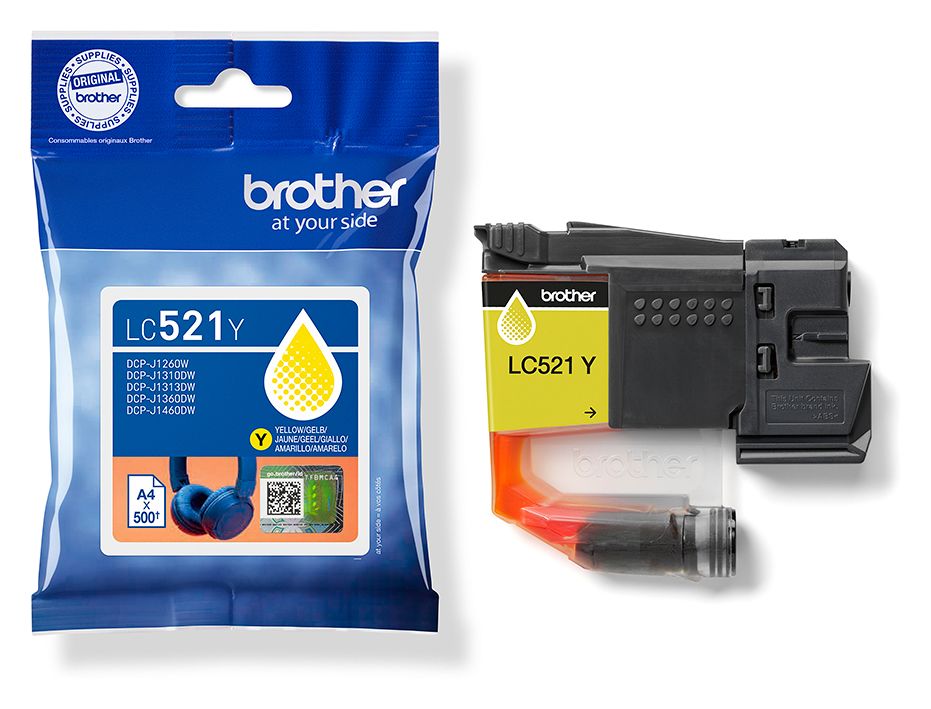 Original Brother LC521Y Tintenpatrone – Gelb, druckt bis zu 500 Seiten