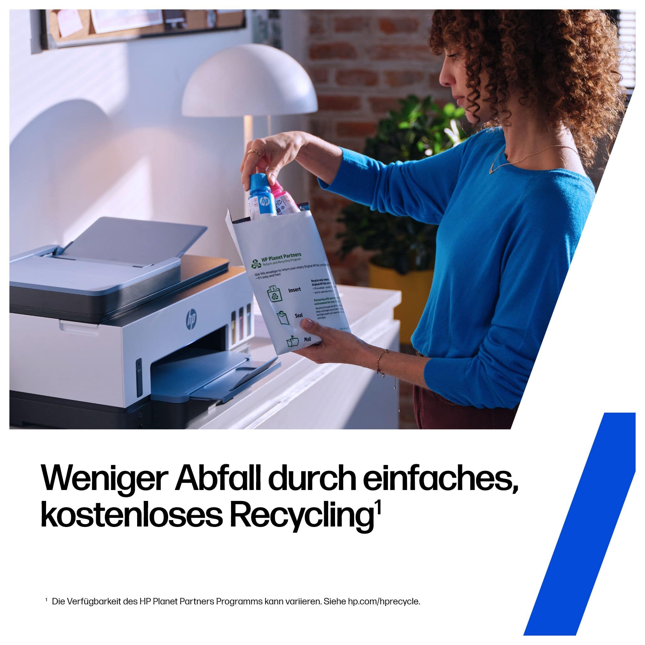 Drucken Sie Tausende von Seiten durch den einfachen Kauf von einem Satz Original HP Tintenflaschen mit hoher Reichweite – bei äußerst niedrigen Kosten pro Seite.[1] Profitieren Sie von hochvolumigem Drucken, einem einfachen und praktischen System zum Nachfüllen von Tinte und von HP Druckqualität und Zuverlässigkeit.
