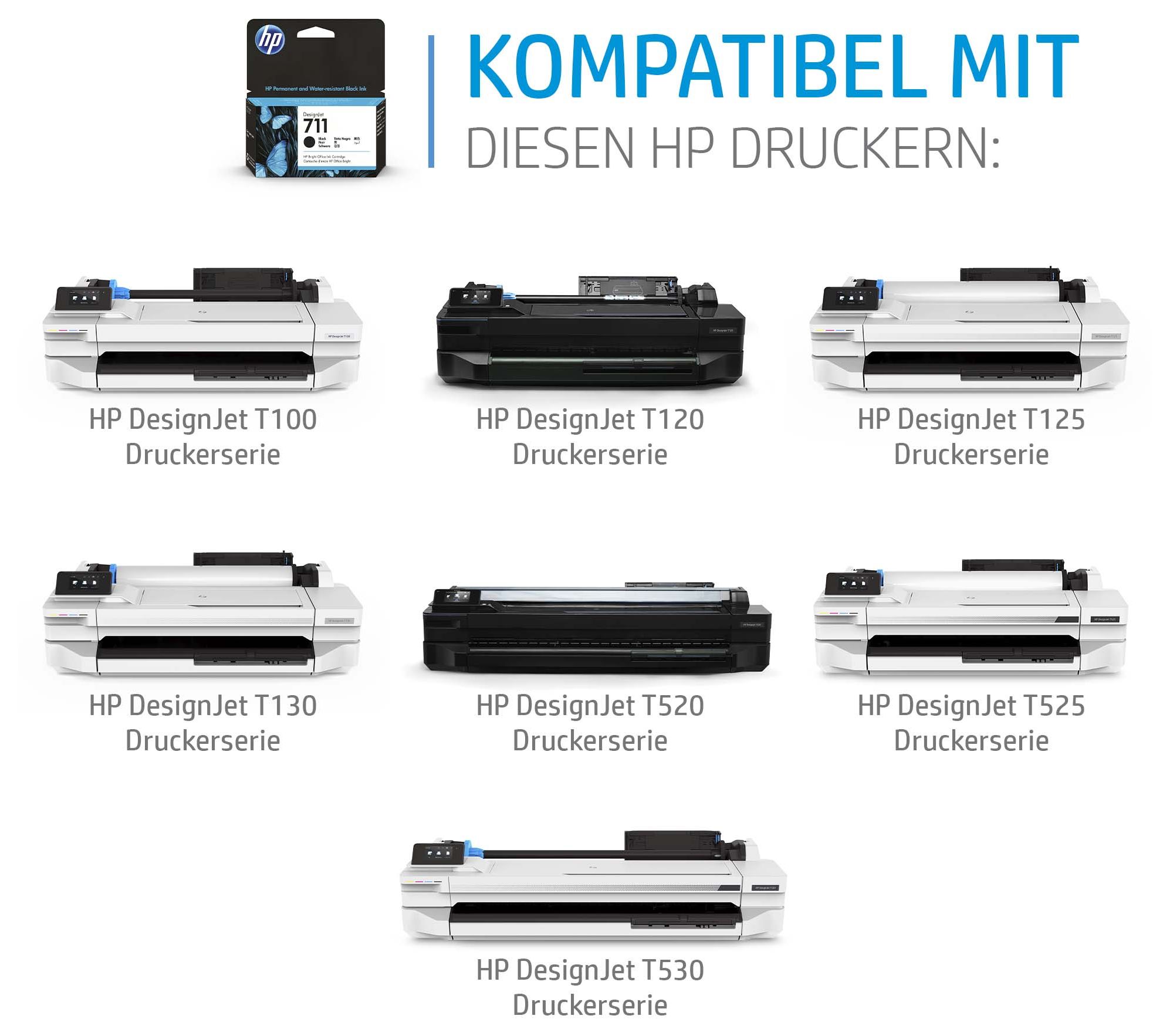 Die HP 711 Tintenpatrone Schwarz (80 ml) liefert konsistente, präzise Ergebnisse. Siehe gestochen scharfe Strichgenauigkeit auf schnell trocknenden, wischfesten Drucken. Original HP Tinten wurden gemeinsam mit dem Drucker für konsistente Ergebnisse entwickelt und getestet.