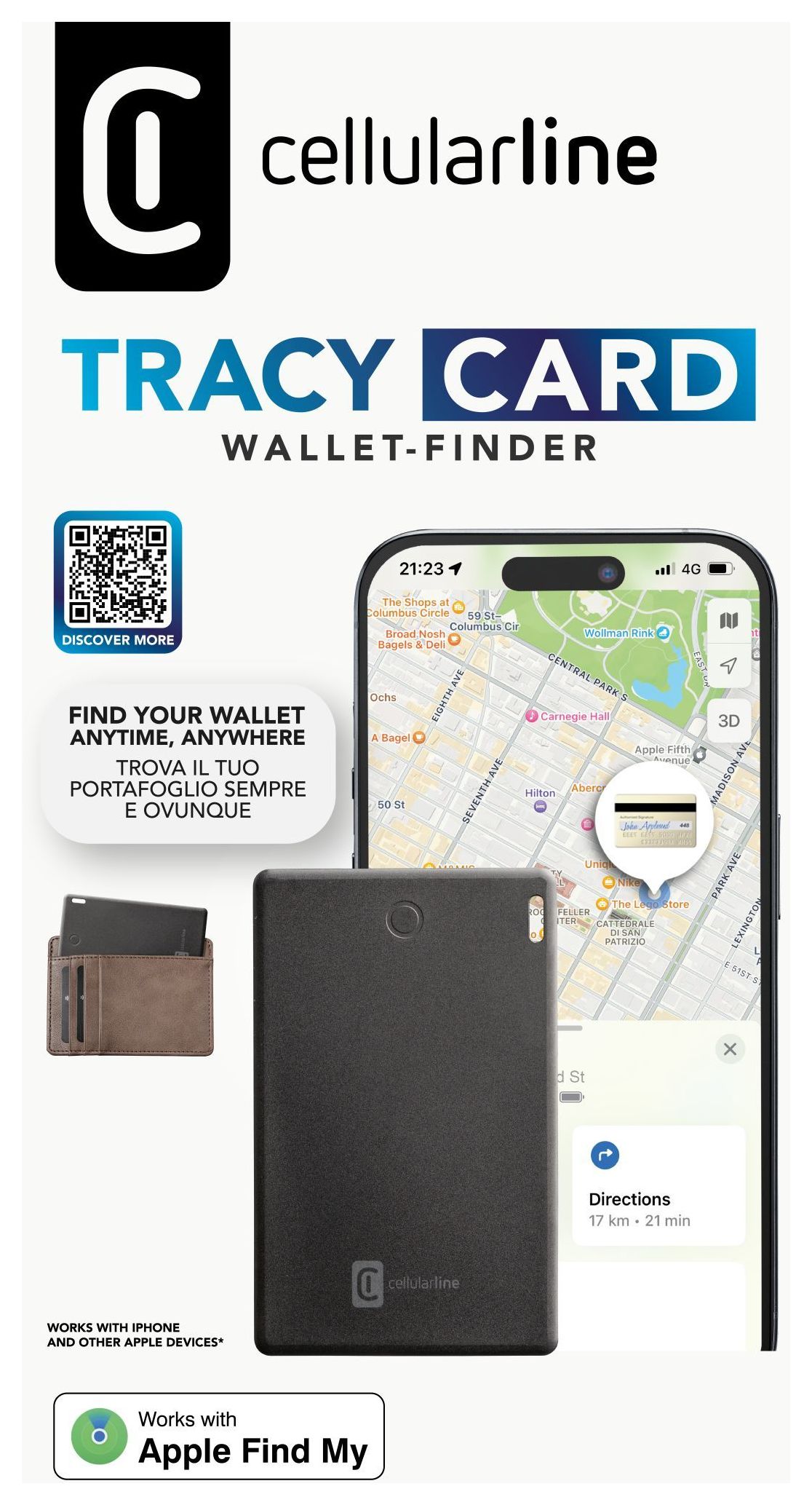 TRACY CARD ist ein kartenförmiges Gerät, das entwickelt wurde, um Ihre persönlichen Gegenstände im Blick zu behalten. Extrem dünn, kann es leicht in Geldbörsen, Kartenhalter und vieles mehr eingesetzt werden. Mit TRACY CARD ist das Verfolgen sowohl entfernter als auch naher Gegenstände einfach und schnell. Dieses Gerät ist ausschließlich mit Apple-Geräten kompatibel, da es die bereits auf Apple-Geräten installierte Find My-App verwendet, um den aktuellen Standort Ihrer Gegenstände zu überwachen. Ausgestattet mit einer langlebigen Batterie ist TRACY CARD dank der Find My-App (iOS) für die Paarung einfach einzurichten.