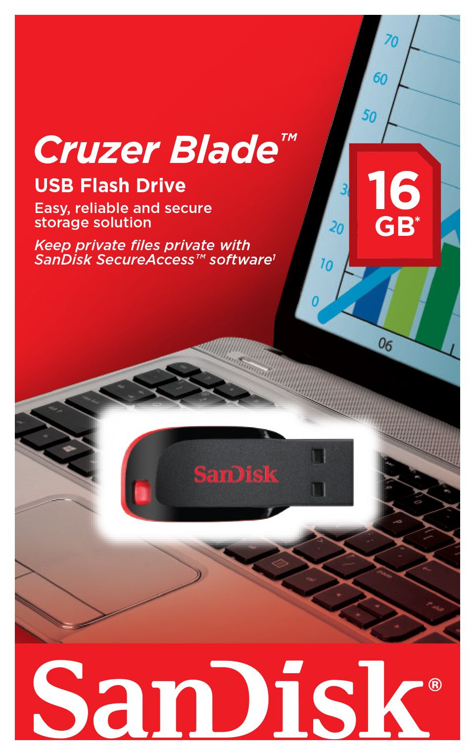 Das Cruzer Blade USB Flash-Laufwerk stammt von SanDisk, dem Wegbereiter für USB-Flash-Speichertechnologie, und verbindet hohe Kapazität mit Kompaktheit. Das USB-Laufwerk ist mit bis zu 64GB Kapazität erhältlich – genügend Platz für alle wichtigen Dateien.