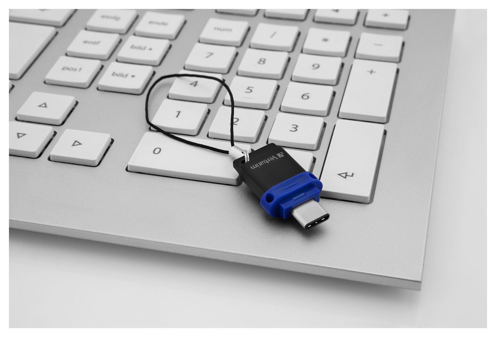 Dateien schnell und einfach zwischen Ihrem USB-C-fähigen Mobilgerät oder Laptop und anderen PCs übertragen – mit dem Store ‘n’ Go Dual-USB-Stick für USB-C-Geräte von Verbatim – keine WLAN- oder Funkverbindung erforderlich.
