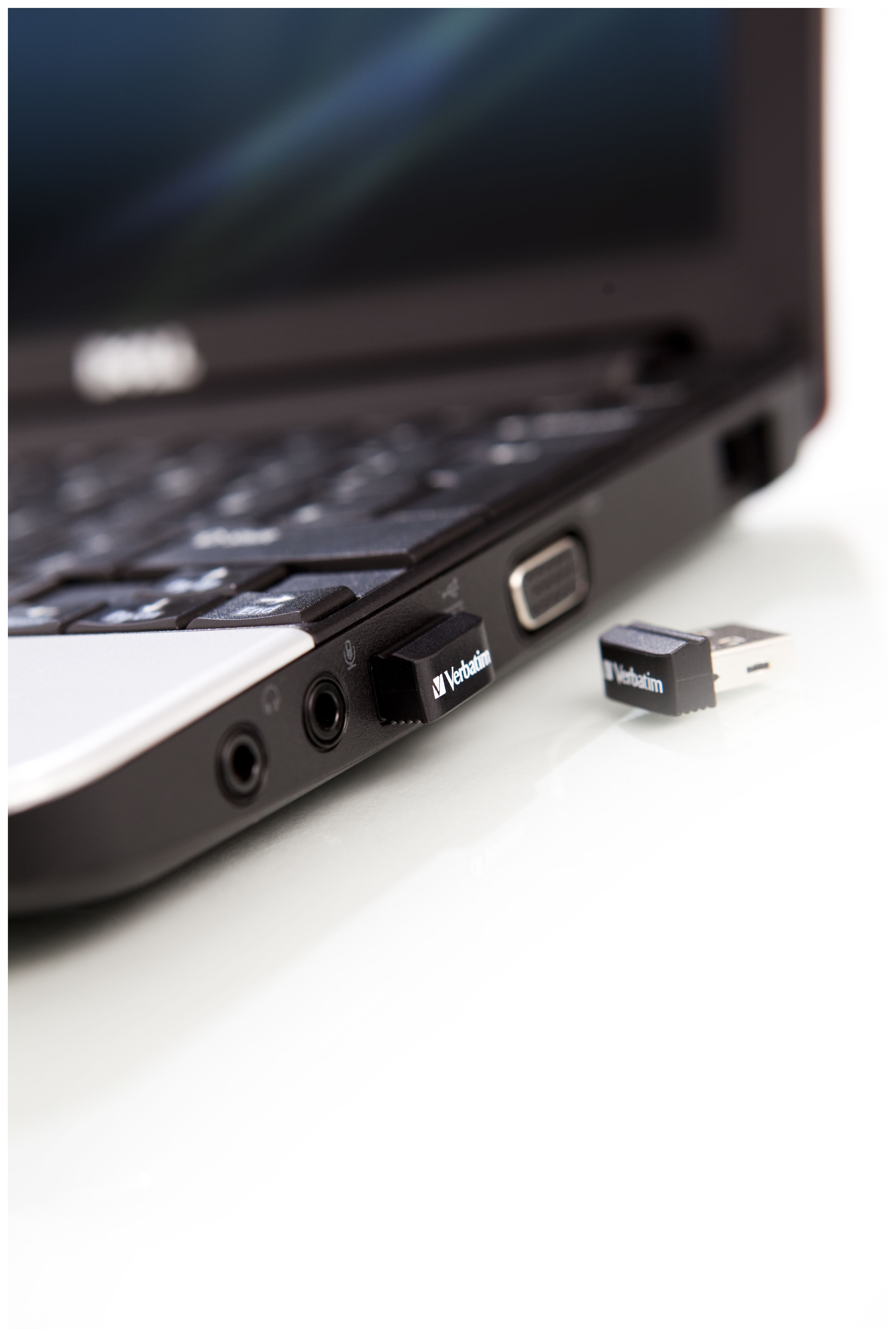 Bei Anschluss an einen USB-Anschluss ragen lediglich 5 mm des Verbatim Store 'n' Stay NANO USB-Sticks hervor, d. h. er ist so klein und unauffällig, dass er praktisch dauerhaft eingesteckt bleiben kann.