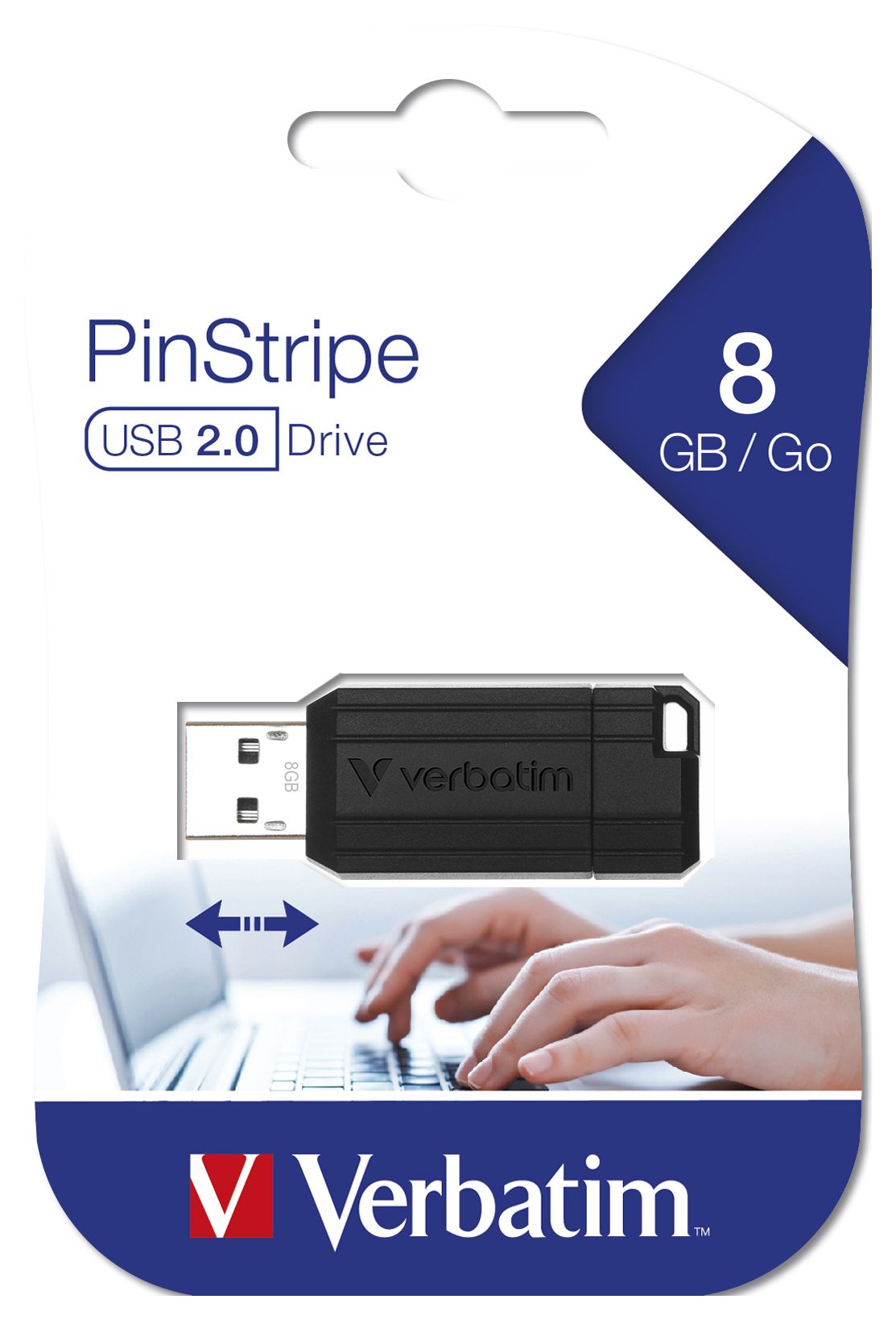 Das PinStripe USB-Laufwerk von Verbatim verfügt über einen praktischen Schiebemechanismus, der den USB-Anschluss ganz ohne leicht abhanden kommende Schutzkappe stets zuverlässig schützt.