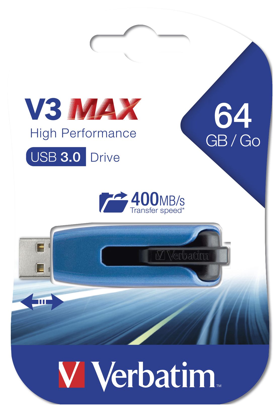Ausgestattet mit einer USB 3.0-Schnittstelle für Datenübertragung mit SuperSpeed ermöglicht der Store 'n' Go V3 MAX USB-Stick Datenübertragungsgeschwindigkeiten bis zu 175 MB/Sek., sodass größere Dateien unterschiedlicher Typen schneller übertragen und gespeichert werden können.