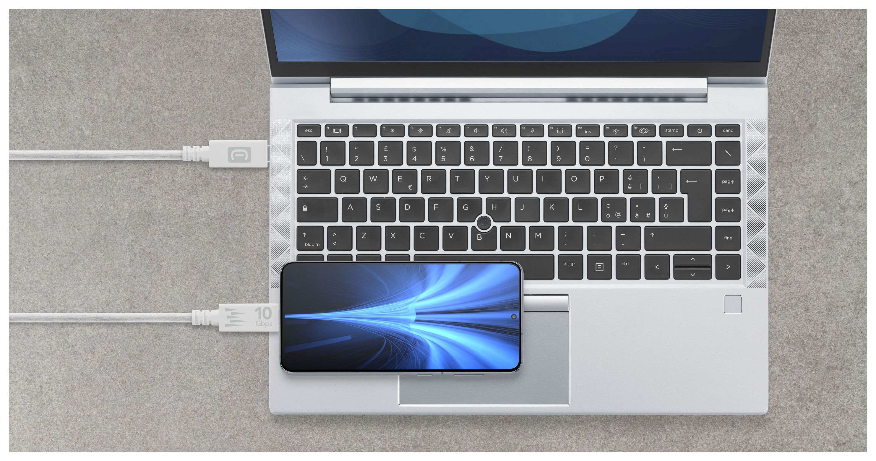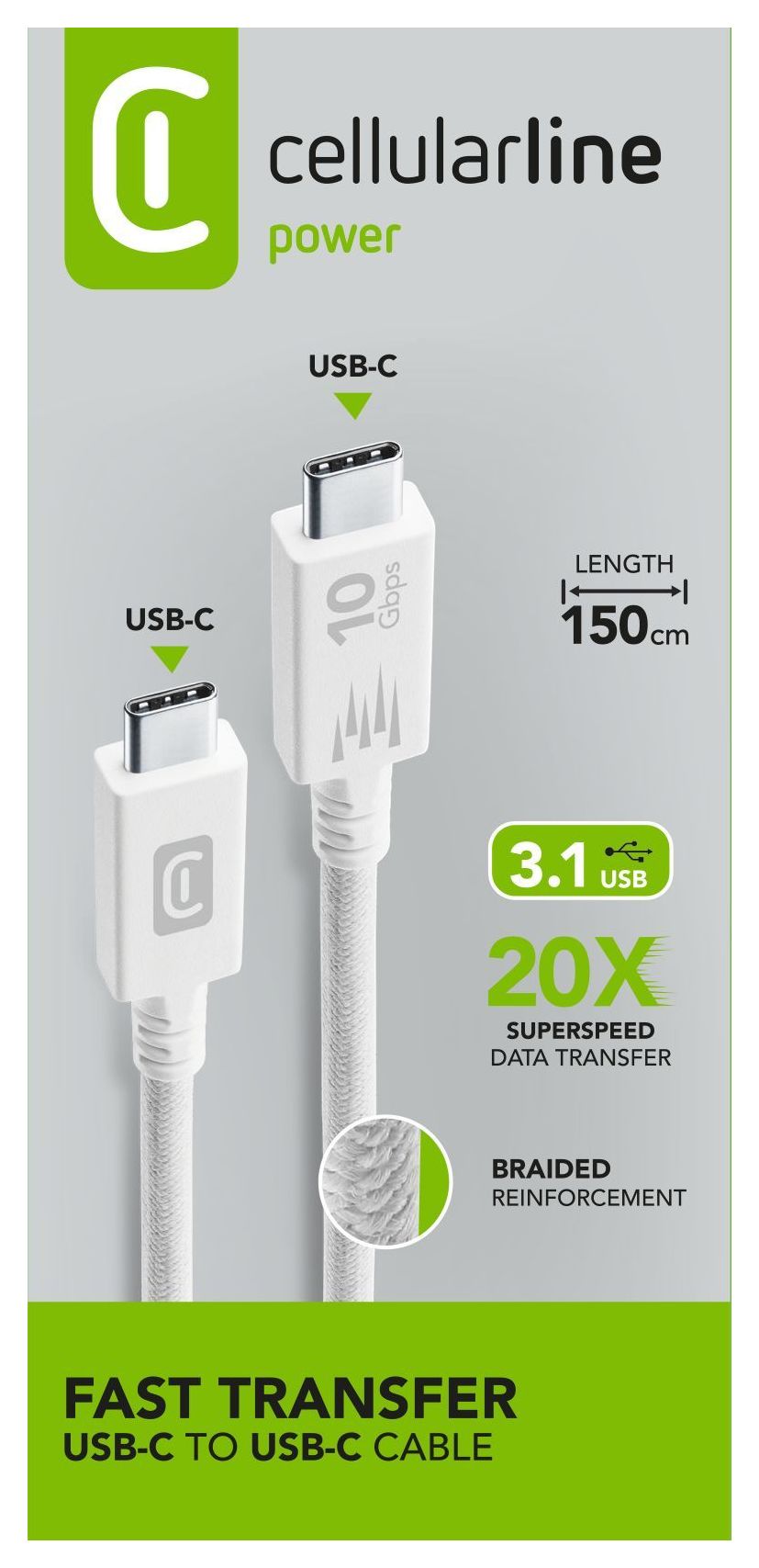 FAST TRANSFER von Cellularline ist ein Kabel mit USB 3.1 Technologie, mit dem Sie Musik, Videos, Bilder und viele andere Daten mit einer Geschwindigkeit von 10Gbps übertragen können, 20 Mal schneller als ein Standardkabel. Dieses Kabel wurde entwickelt, um die beste Leistung zu erzielen: verlängerter Stecker, um eine hohe Übertragungsgeschwindigkeit zu garantieren, stoffummanteltes Kabel für ein angenehmeres Gefühl und 150 cm Länge, perfekt für den Austausch von Daten zwischen Geräten.