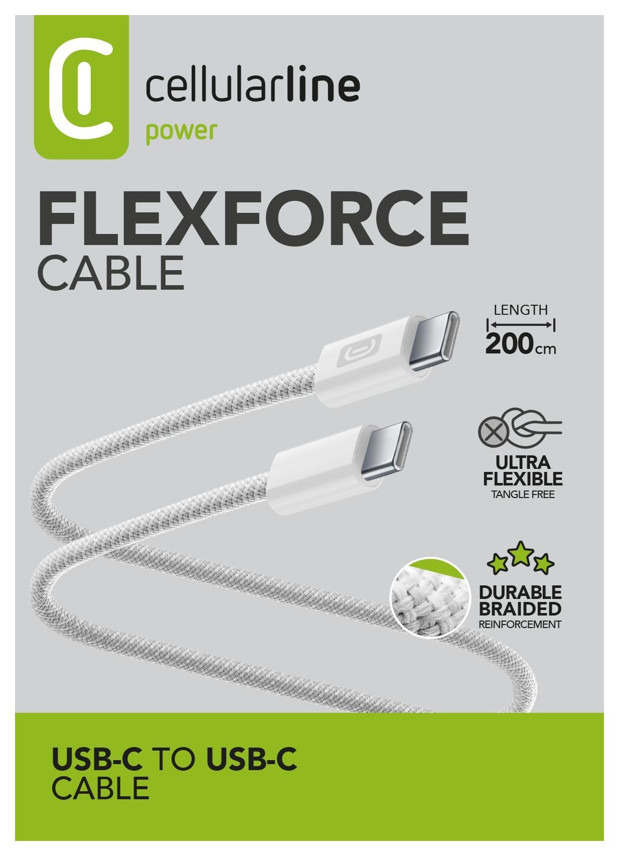 Das FLEXFORCE-Kabel von Cellularline ist die ideale Lösung für alle, die Geschwindigkeit, Zuverlässigkeit und Haltbarkeit beim Laden ihrer Geräte suchen. Kompatibel mit Laptops, Tablets und Smartphones mit USB-C-Anschluss ermöglicht es das Laden mit maximaler Leistung von bis zu etwa 60W und gewährleistet optimale Leistung selbst für die anspruchsvollsten Geräte. Das innovative Design kombiniert eine angenehme, stoffähnliche Silikonbeschichtung mit einer extrem flexiblen Struktur, die lästiges Verwickeln verhindert. Dank der verstärkten Hülle bietet das Kabel überlegene Widerstandsfähigkeit gegen tägliche Abnutzung. Mit einer Länge von 200 cm und erhältlich in eleganten Farben wie Weiß, Gelb und Blau passt FLEXFORCE perfekt zu jedem Stil und praktischen Bedarf.