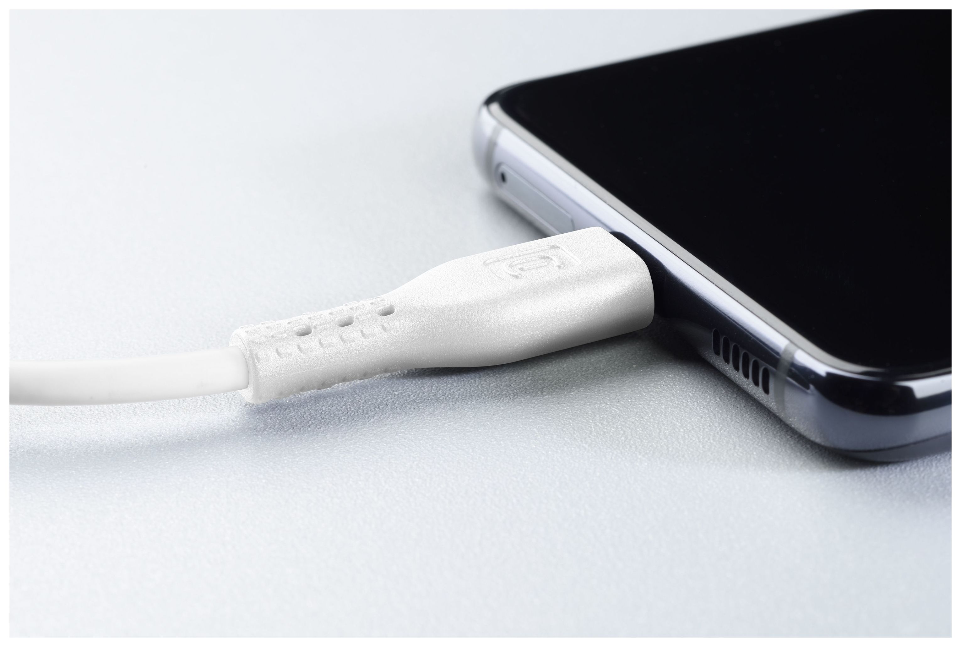 POWER CABLE mit USB-C und USB-C-Anschluss, zum Aufladen und Übertragen von Daten auf Geräte mit USB-C-Anschluss, je nach Bedarf in verschiedenen Längen verfügbar. POWER CABLE wurde zudem dazu konzipiert, das Aufladen besonders einfach und sicher zu machen: Der abgerundete Anschluss und die Kabelführung mit Reliefstruktur erleichtern das Einführen des Kabels in den Ladestecker.