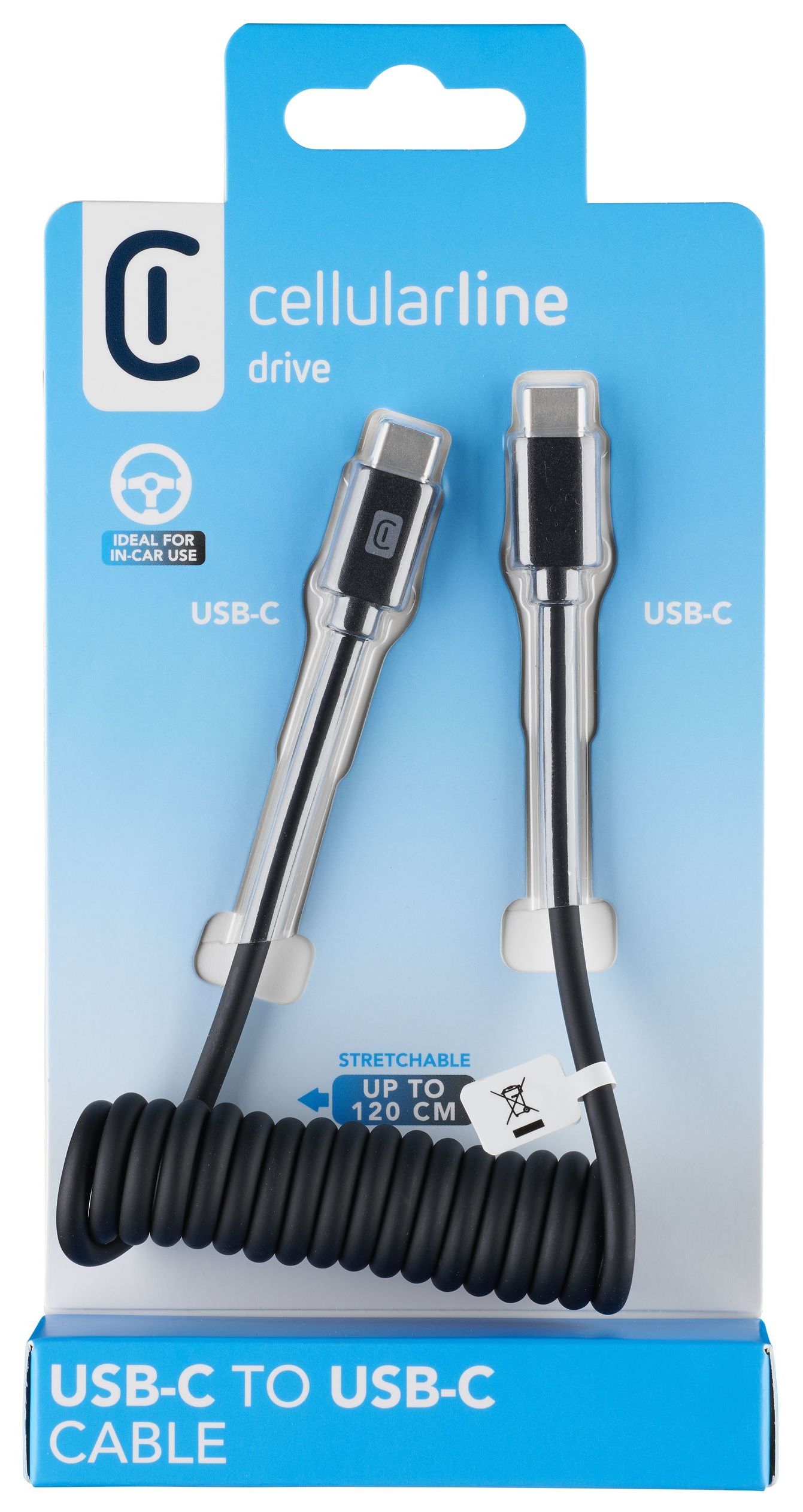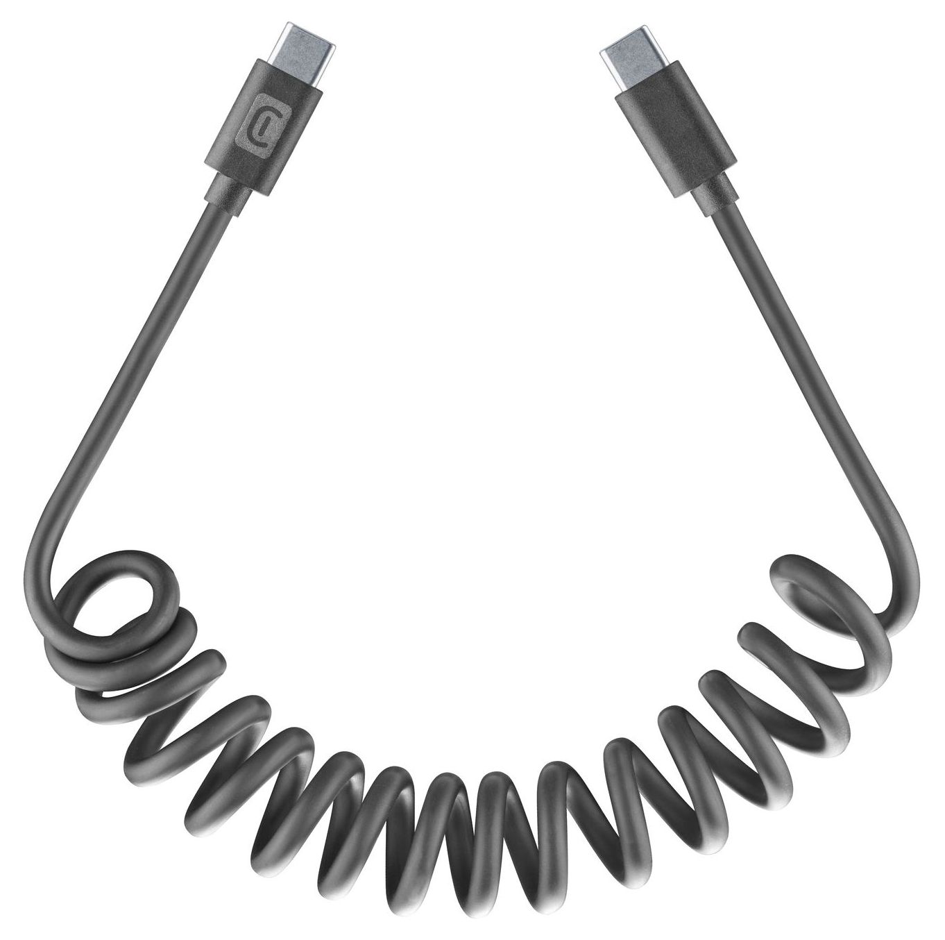 Spiral Cable Spiralkabel Rundkabel USB C auf USB C Männlich bis 60 W 1,2 m (Schwarz)