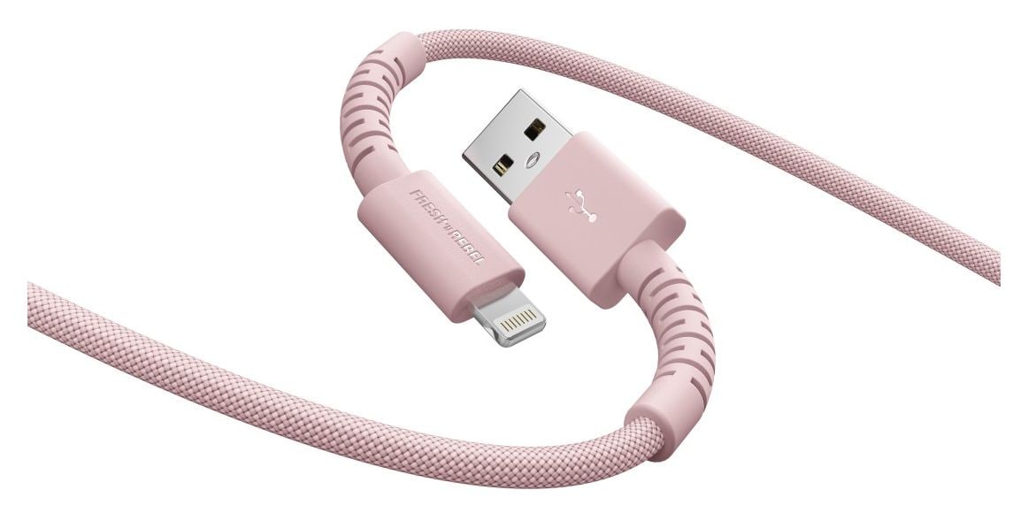USB-A zu Lightning silicone geflochtenes Kabel "FlexWave" 2m, Pastel Pink