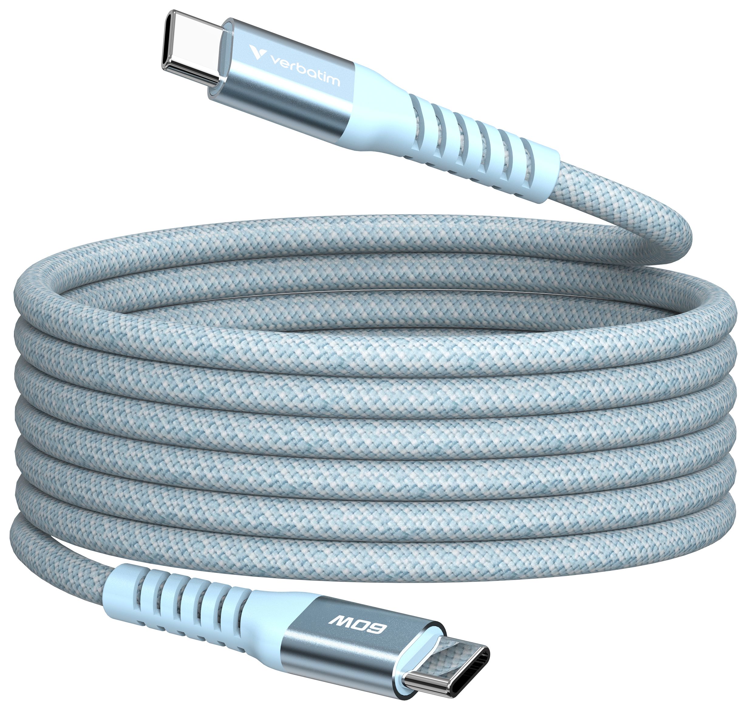 Verbatim 31852. Kabellänge: 1,2 m. Anschluss 1: USB C, Anschluss 2: USB C, USB-Version: USB 2.0, Max. Datenübertragungsrate: 0,48 Gbit/s, Produktfarbe: Blau