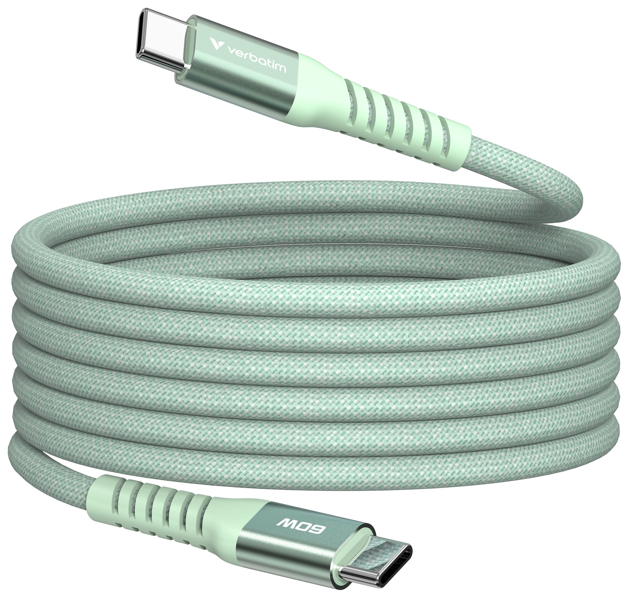 Verbatim 31864. Kabellänge: 1,2 m. Anschluss 1: USB C, Anschluss 2: USB C, USB-Version: USB 2.0, Max. Datenübertragungsrate: 0,48 Gbit/s, Produktfarbe: Grün