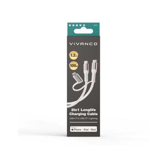 Longlife 2in1 USB Type C, Lightning MFI Kabel, 100W