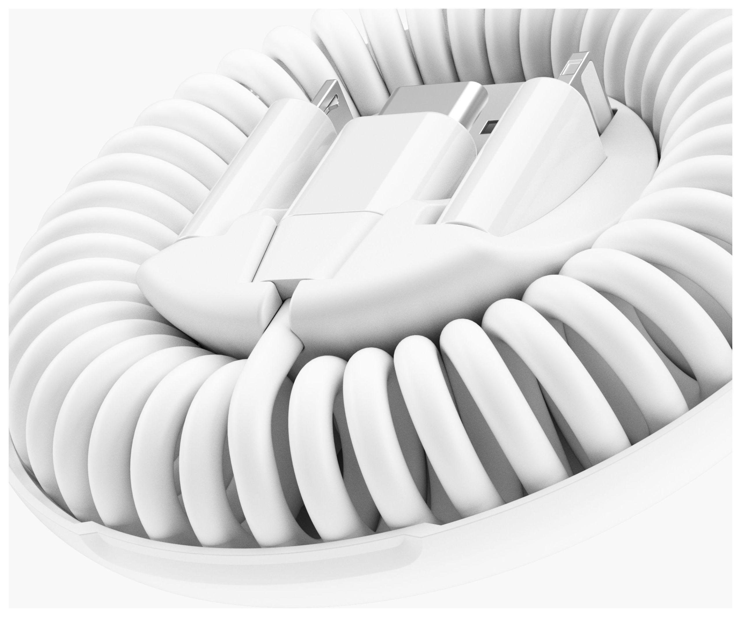 All-in-One, USB-C zu USB-C, Spiralkabel, 90 cm, USB-A, Micro-USB, Lightning Adapter, weiss
