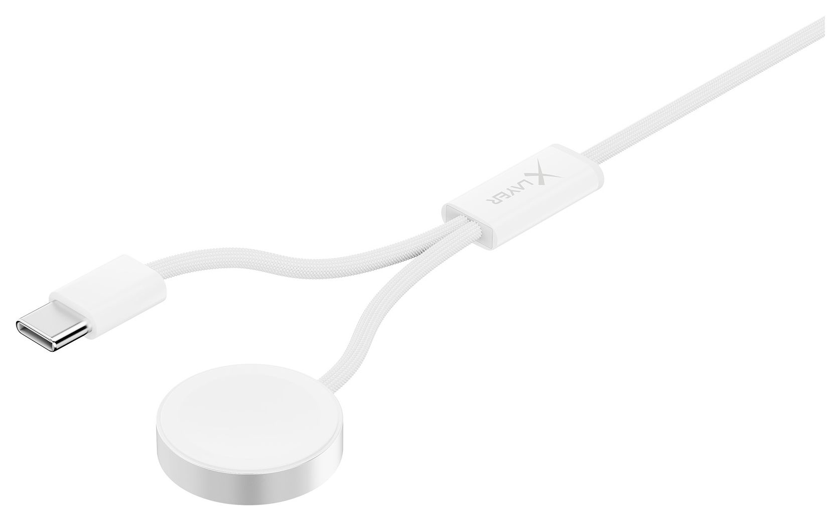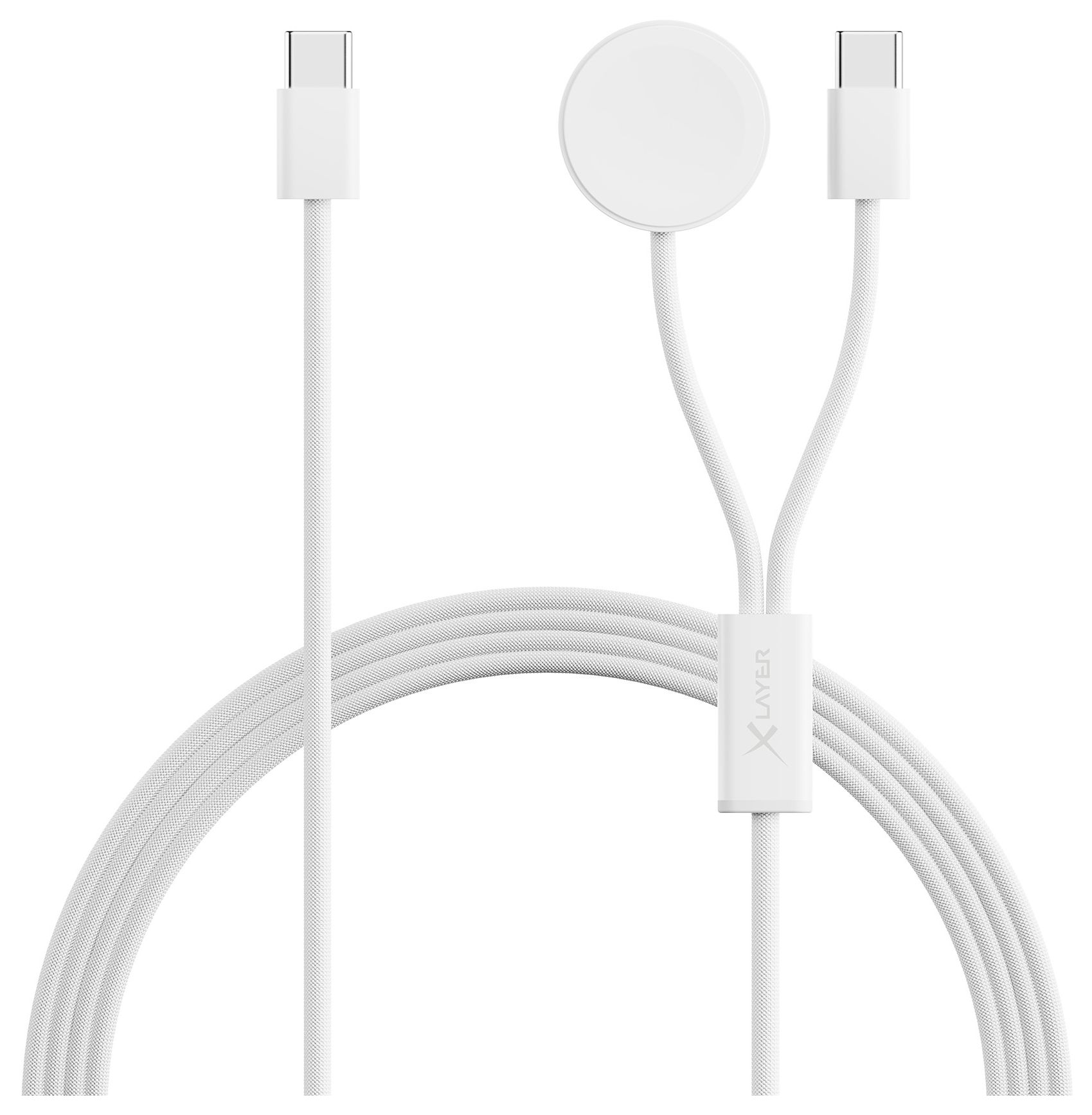 feingewebtes 2 in 1 Premium-Kabel mit USB Typ C & Apple Watch Charger, 1,5 m, weiss