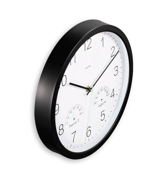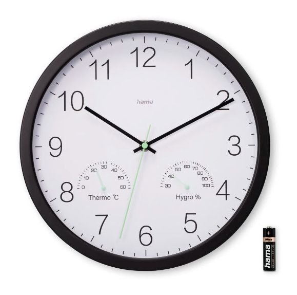 Wanduhr "Santorini", ohne Ticken, m. Thermo- u. Hygrometer, Ø 30cm, Schwarz