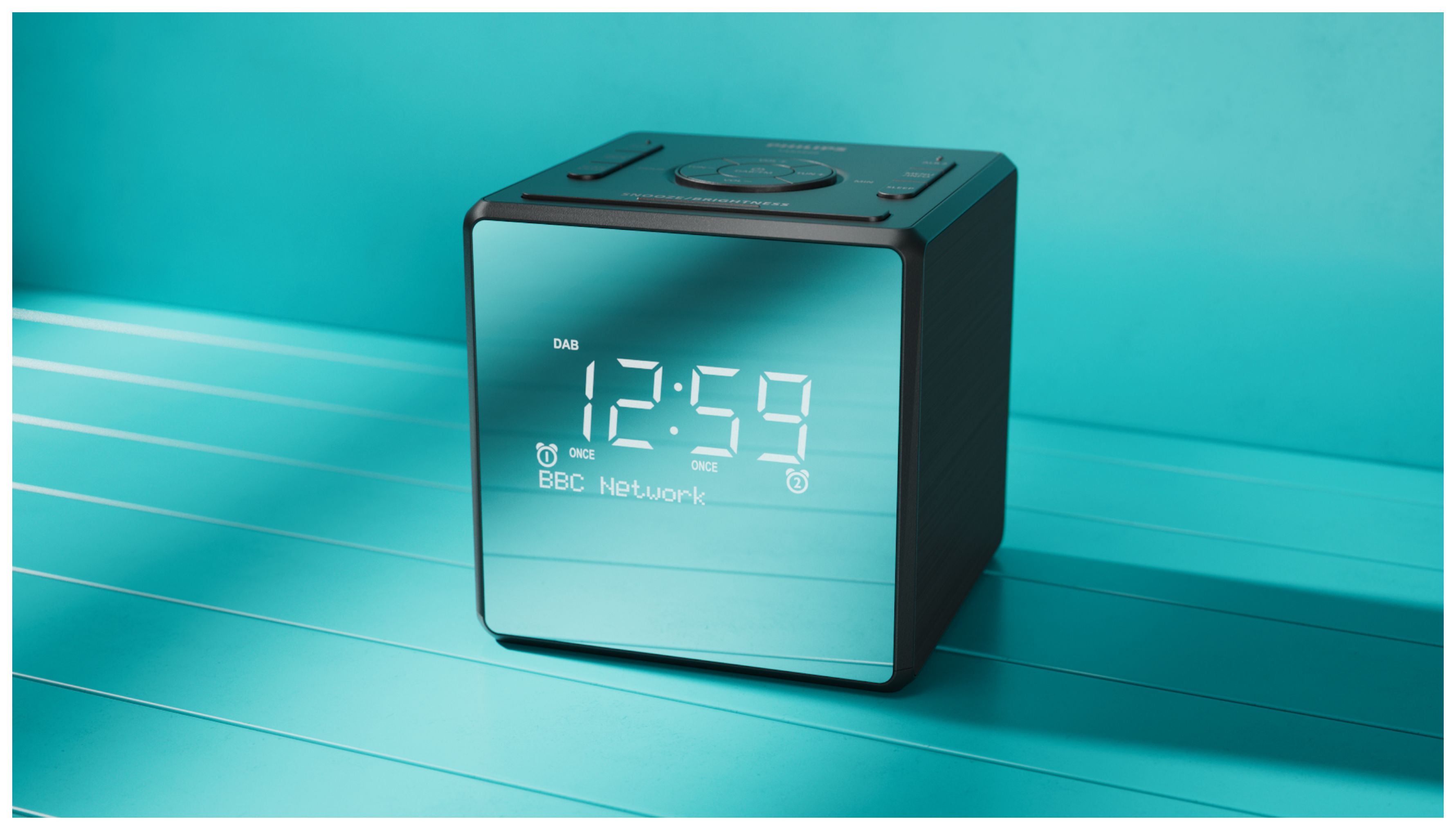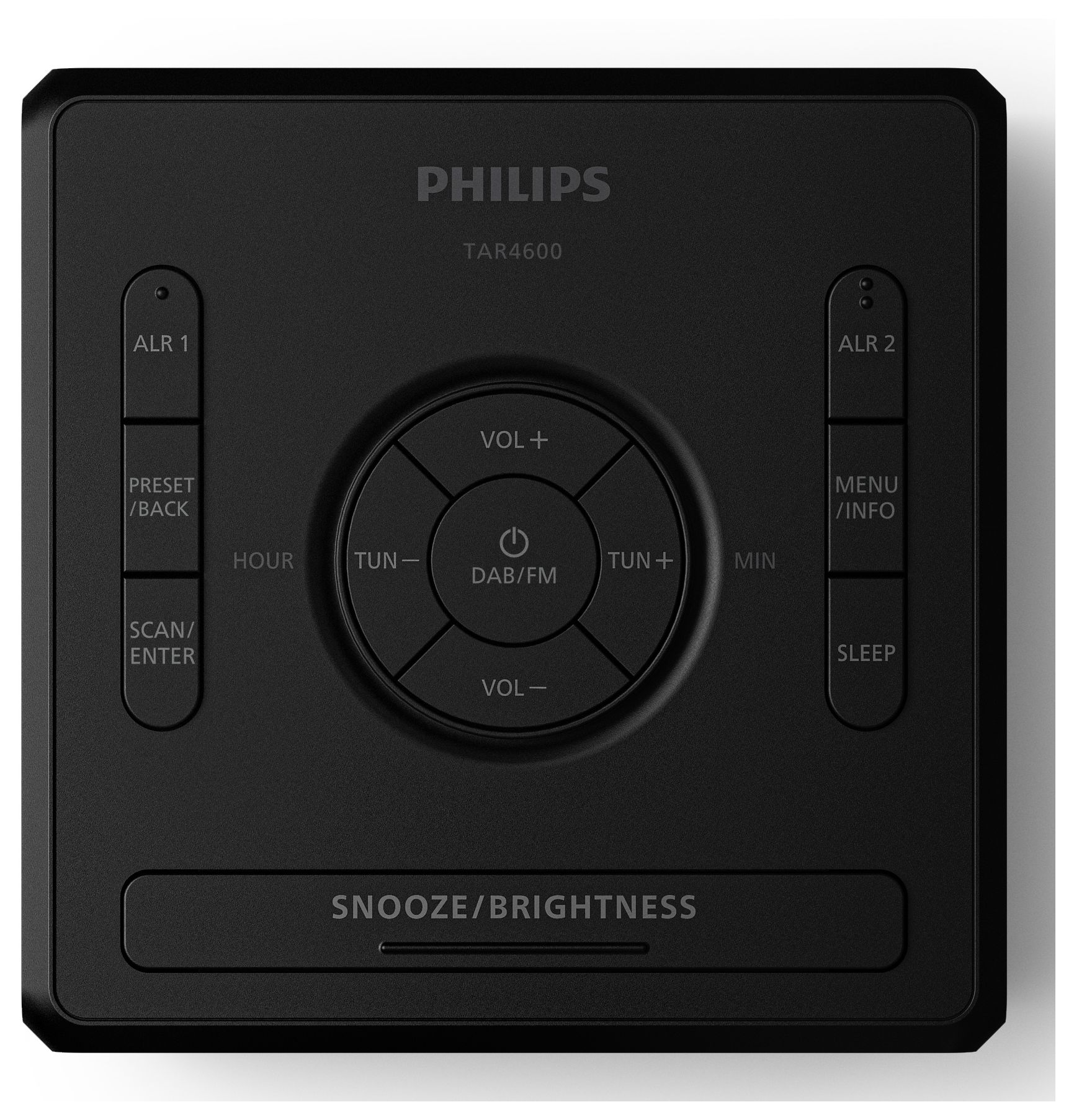 Philips TAR4600/10, Digitaler Wecker, Quadratisch, Schwarz, 12/24 h, DAB, DAB+, FM, 87,5 - 108 MHz