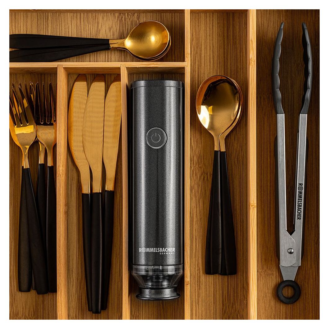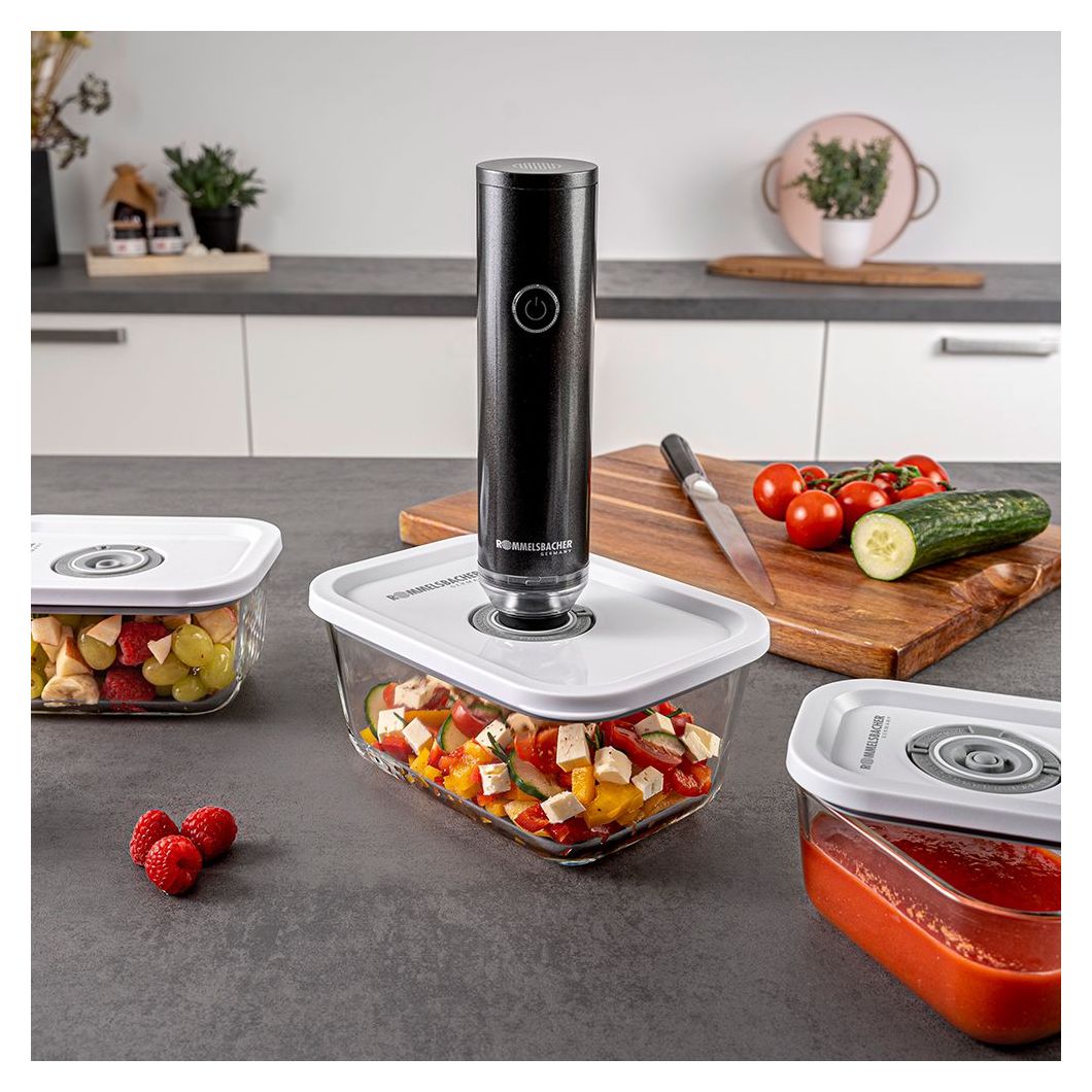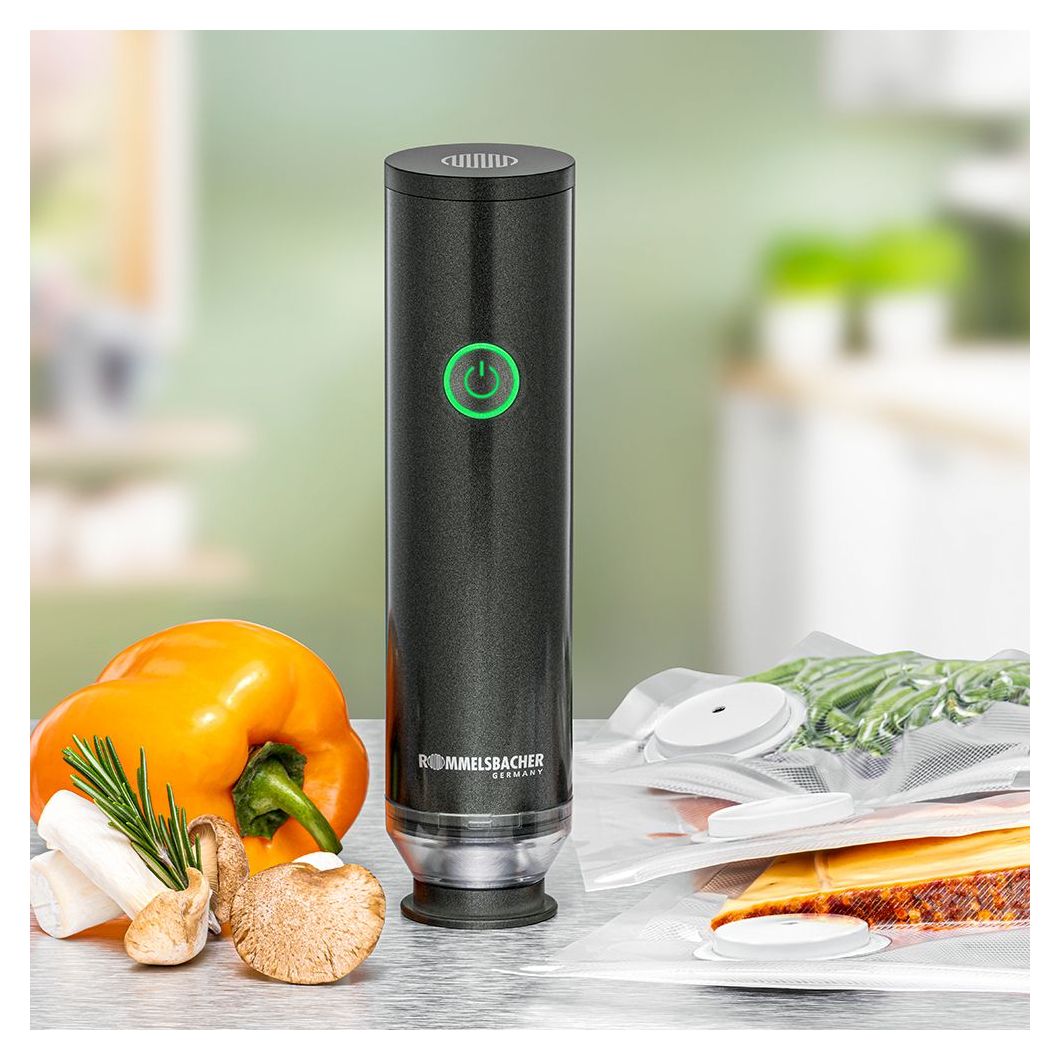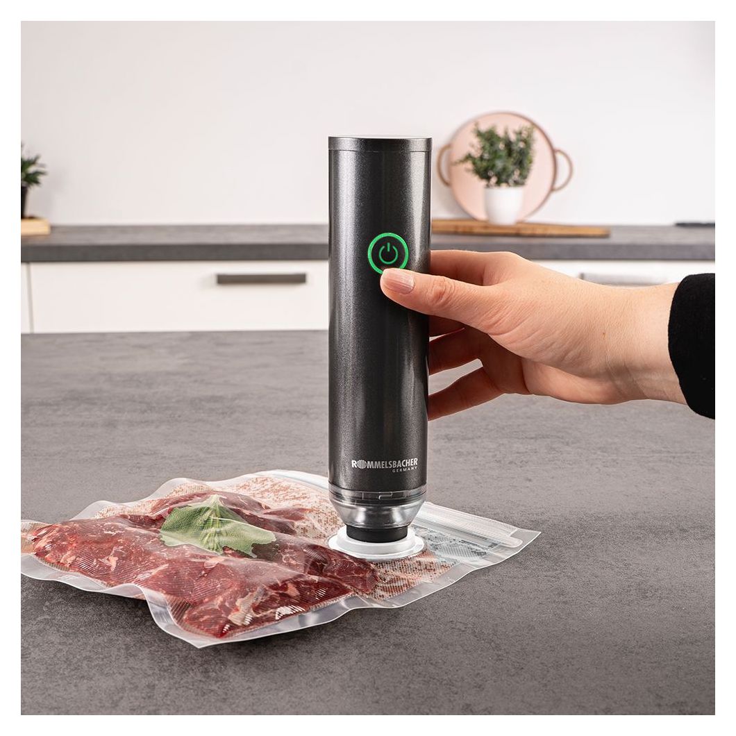 Rommelsbacher VAC 25. Produktfarbe: Anthrazit, Vakuum: 0,5 mbar, Gehäusematerial: Kunststoff. Akku-/Batterietechnologie: Lithium-Ion (Li-Ion). Breite: 50 mm, Tiefe: 50 mm, Höhe: 200 mm