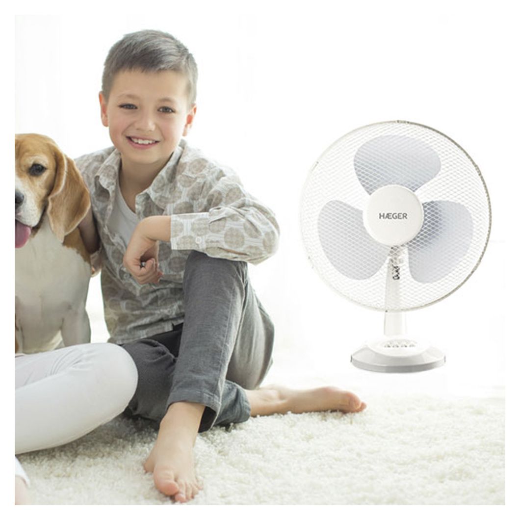 Haeger FA-016.007A, Haushalts-Lamellenlüfter, Weiß, Tisch, 40 cm, 3402,6 m³/h, 90°