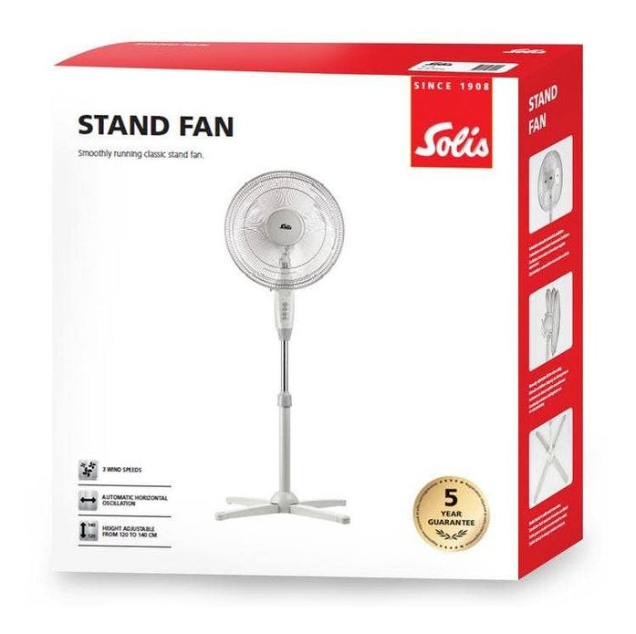 Der Solis Stand Fan verfügt über einen 60-Watt-Motor und Rotorblätter mit einem Durchmesser von nicht weniger als 40 cm, die effektiv mehr Luft bewegen und mehr Kühlung bieten als Blätter mit einer geringeren Grösse.