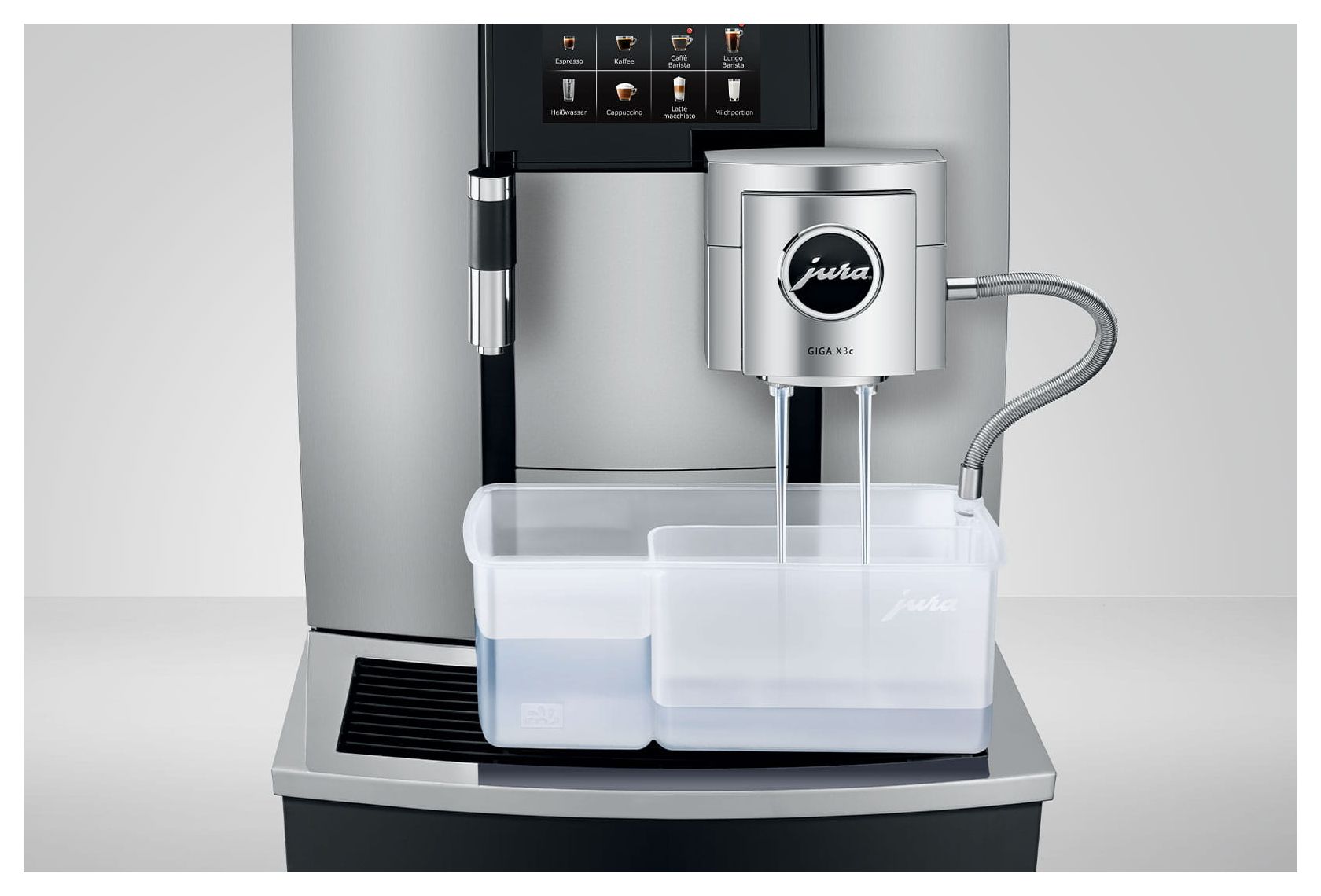 Gesteigerte Leistung bei gleichzeitiger Qualitätsoptimierung – das ist die GIGA X3c. Die Bedienung über das prägnante, 4,3“ große, hochauflösende Touchscreen-Farbdisplay präsentiert sich vollkommen intuitiv. Klar verständliche, moderne Grafiken führen selbst ungeübte Benutzer. Die geschirrspülertaugliche Restwasserschale lässt sich mit nur einer Hand entnehmen, leeren und wieder einsetzen. Dabei verhindert der optimal gelegte Schwerpunkt ein Überschwappen. Einfach, sauber, schnell, bequem – der 5-Sterne-Gedanke reicht bis ins kleinste Detail.