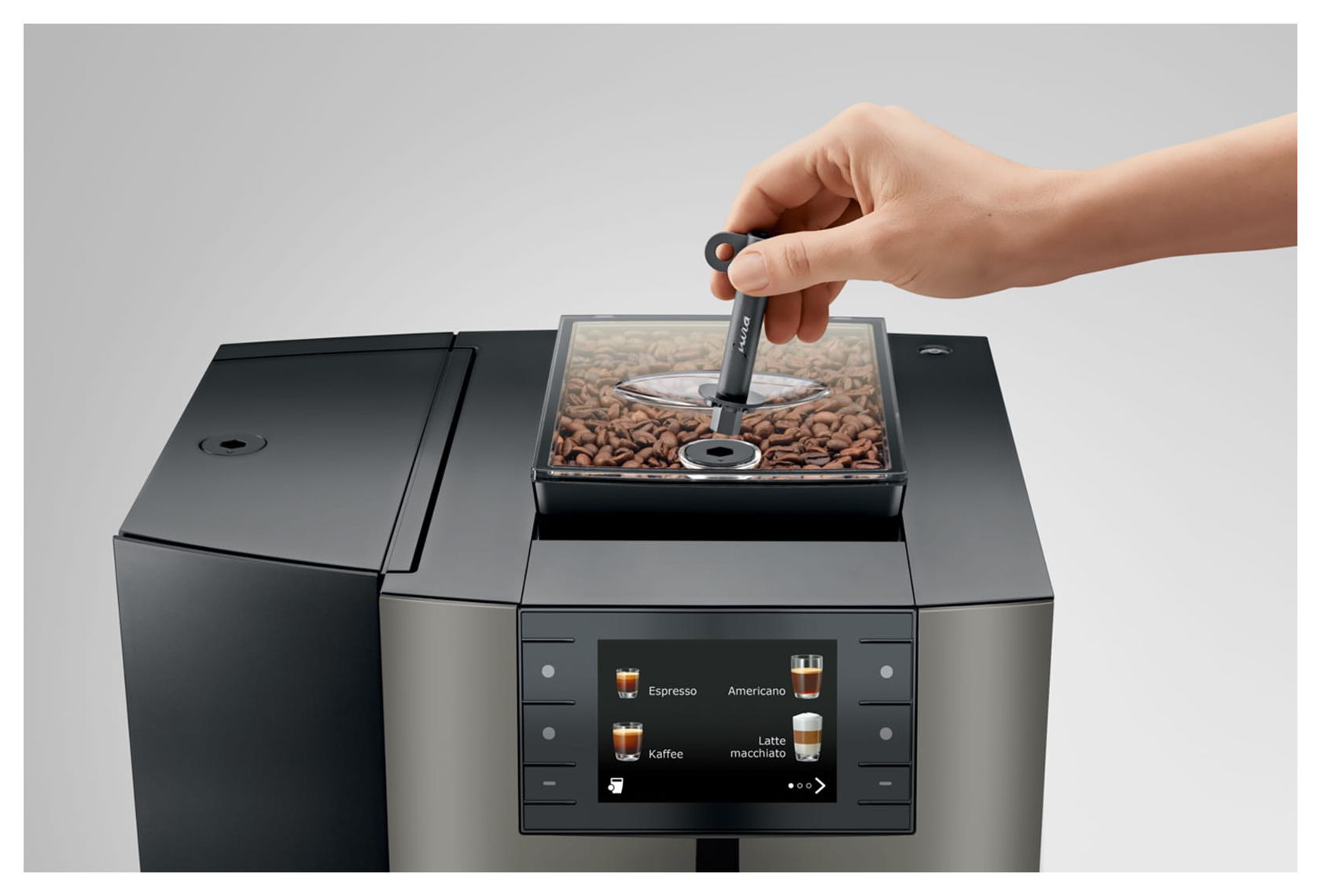 - Großer Bohnenbehälter mit 500 Gramm Fassungsvermögen für selteneres Nachfüllen.