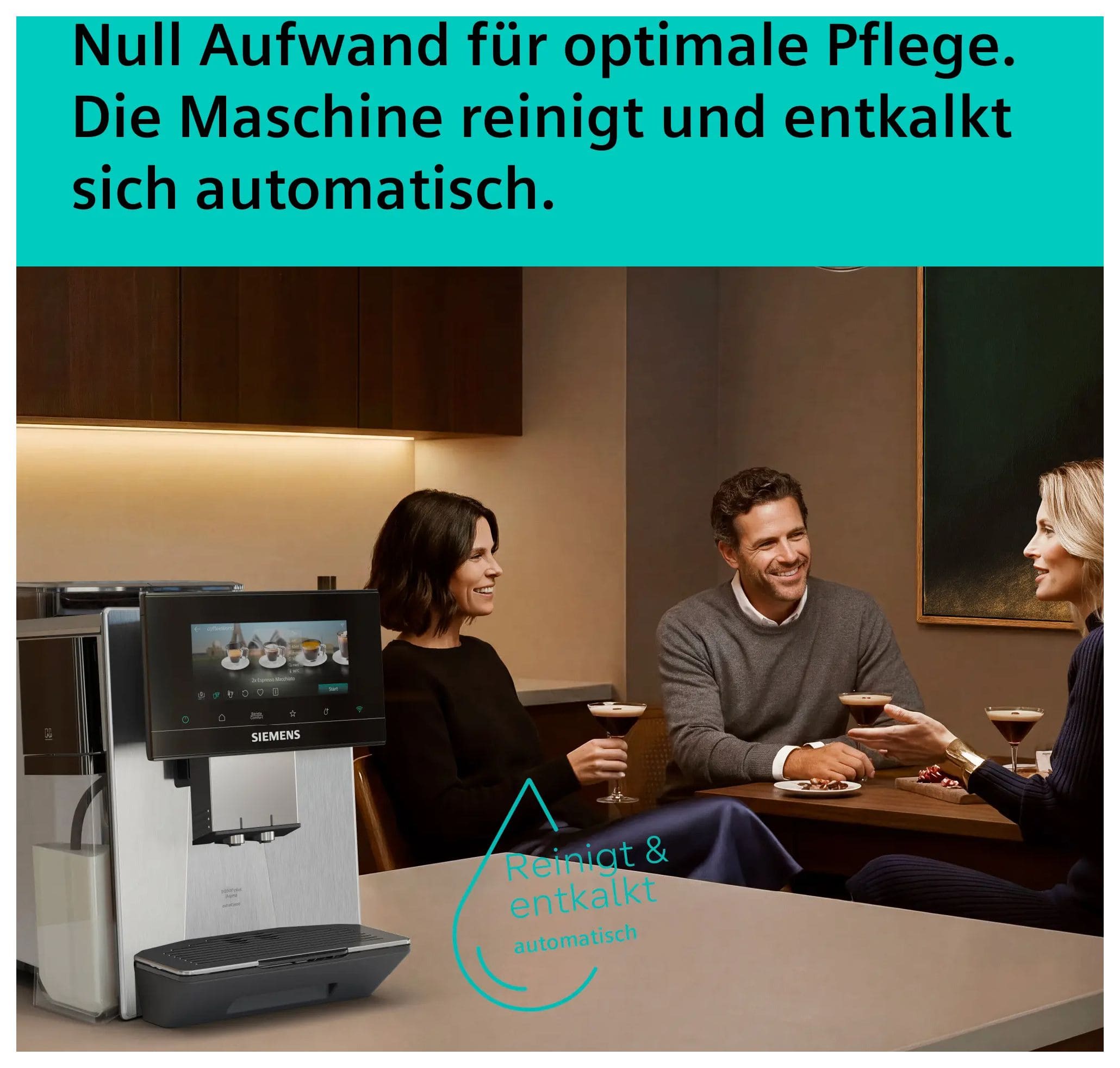 Schon die Zubereitung des perfekten Kaffees ist ein Genuss. Siemens hat die autoMilk Clean Funktion für maximalen Komfort entwickelt. Die vollautomatische Dampfreinigung wird nach jeder Getränkezubereitung aktiviert. Milchrückstände werden entfernt – für ein hohes Maß an Hygiene. Die beste Methode, um dein Wohlergehen und deinen Genuss sicherzustellen – bei jeder Tasse Kaffee.