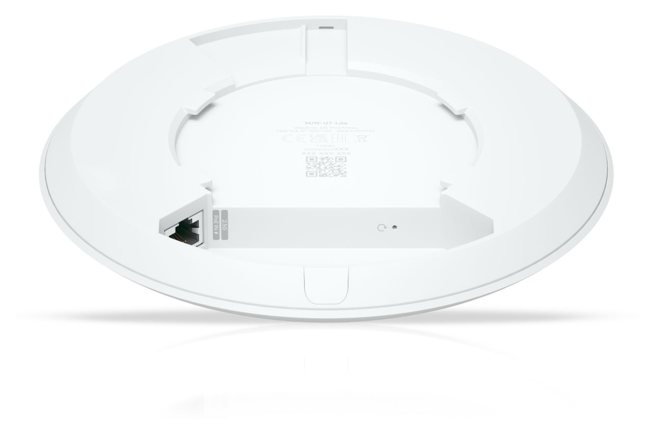 Ubiquiti U7 Lite. 2,4 GHz, 5 GHz, Maximale Datenübertragungsrate: 4300 Mbit/s. Unterstützte Sicherheitsalgorithmen: PPSK. Ethernet LAN Datentransferraten: 1000,2500 Mbit/s. Power over Ethernet (PoE). Produktfarbe: Weiß. Stromverbrauch (max.): 13 W