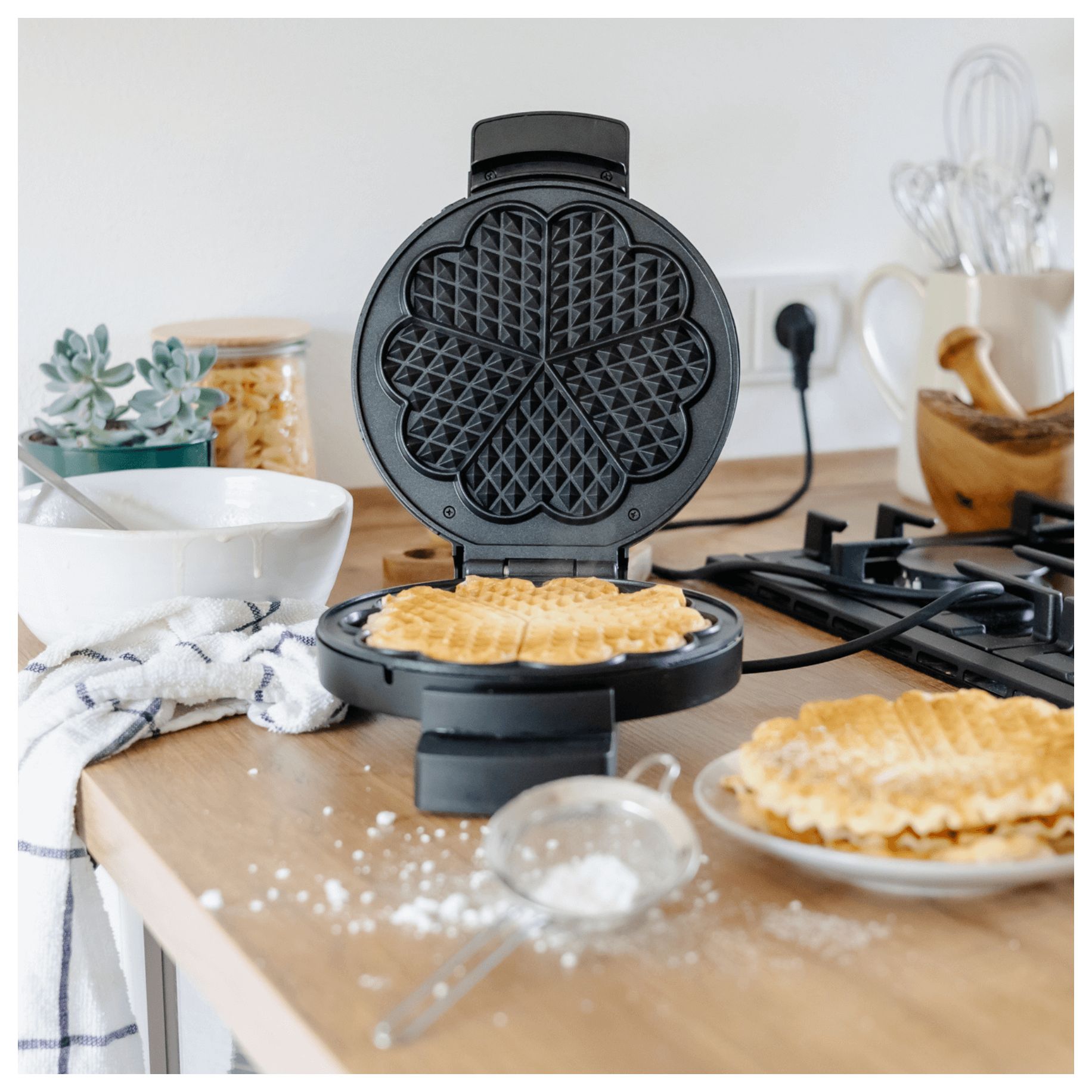Es gibt wohl kaum jemanden, der dem verführerischen Duft von frisch gebackenen Waffeln widerstehen kann. Ob knusprig, zart oder saftig – Waffeln sind ein Genuss für alle Sinne. Mit unserem neuen Waffeleisen WE 3 XL kannst du dich und deine Lieben nun ganz einfach mit extragroßen, perfekt gebackenen Waffeln verwöhnen.