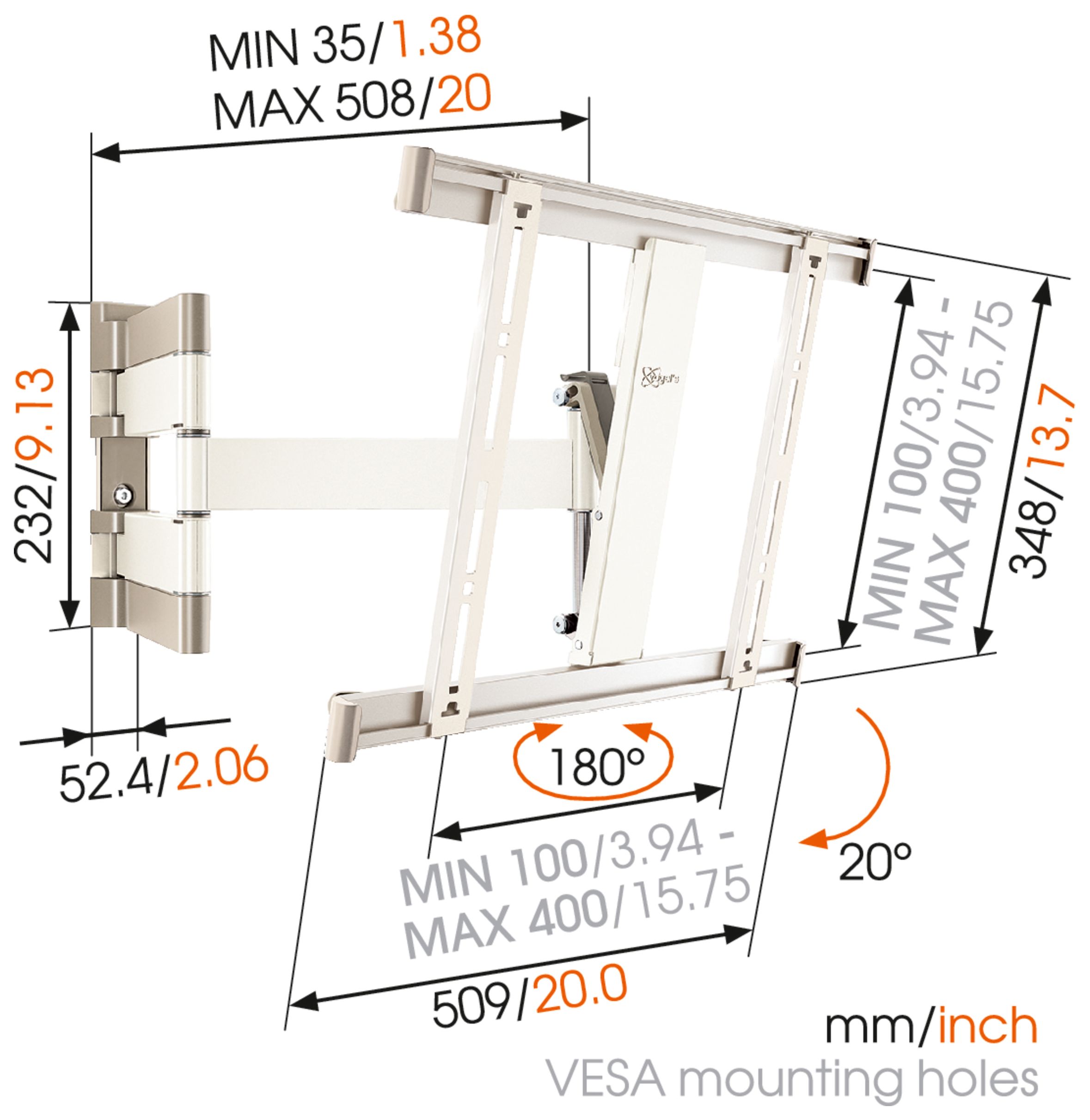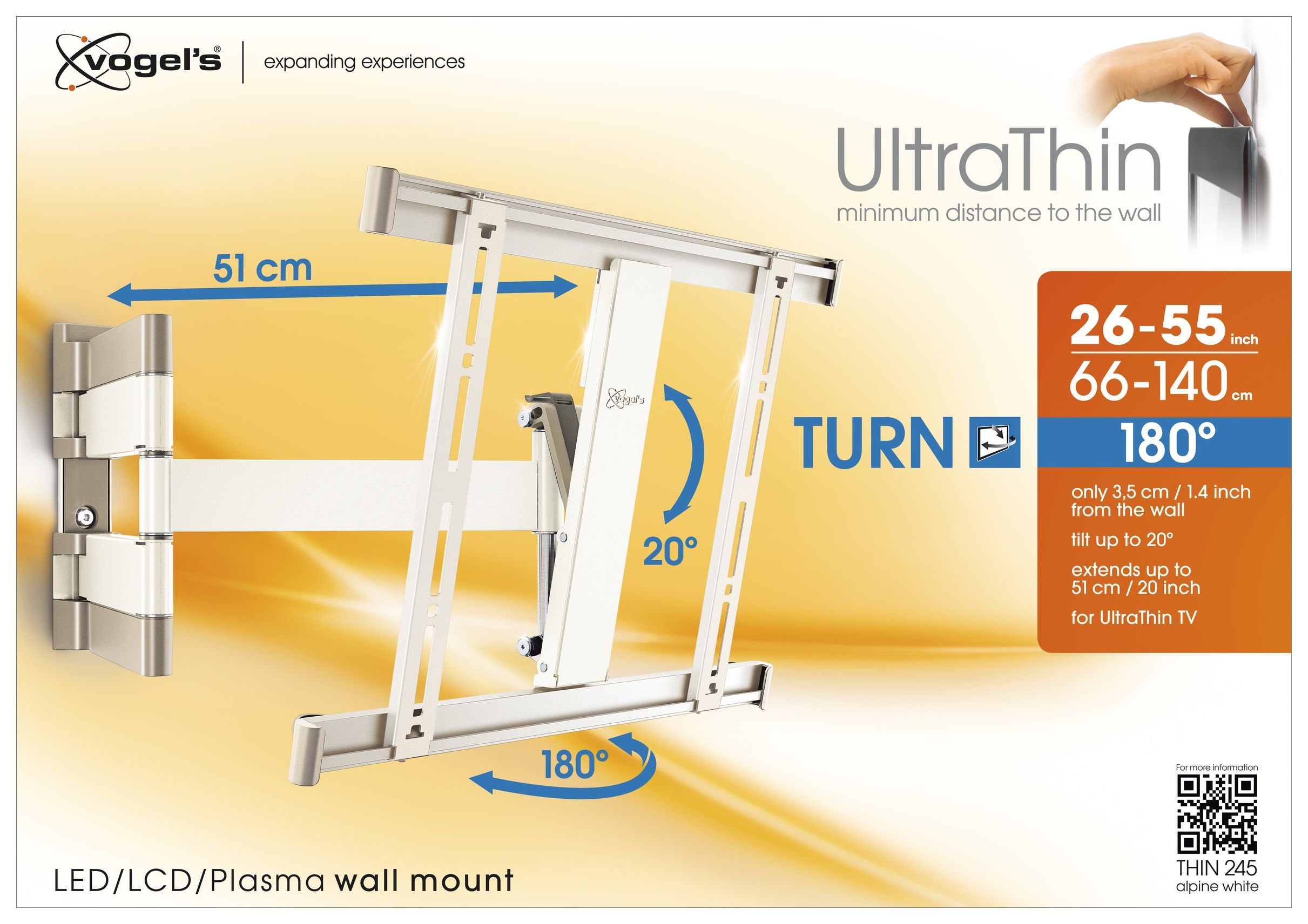 Thin 245 flache Wand Halterung 180° bis 139,7 cm (55") 18 kg 0 - 20°