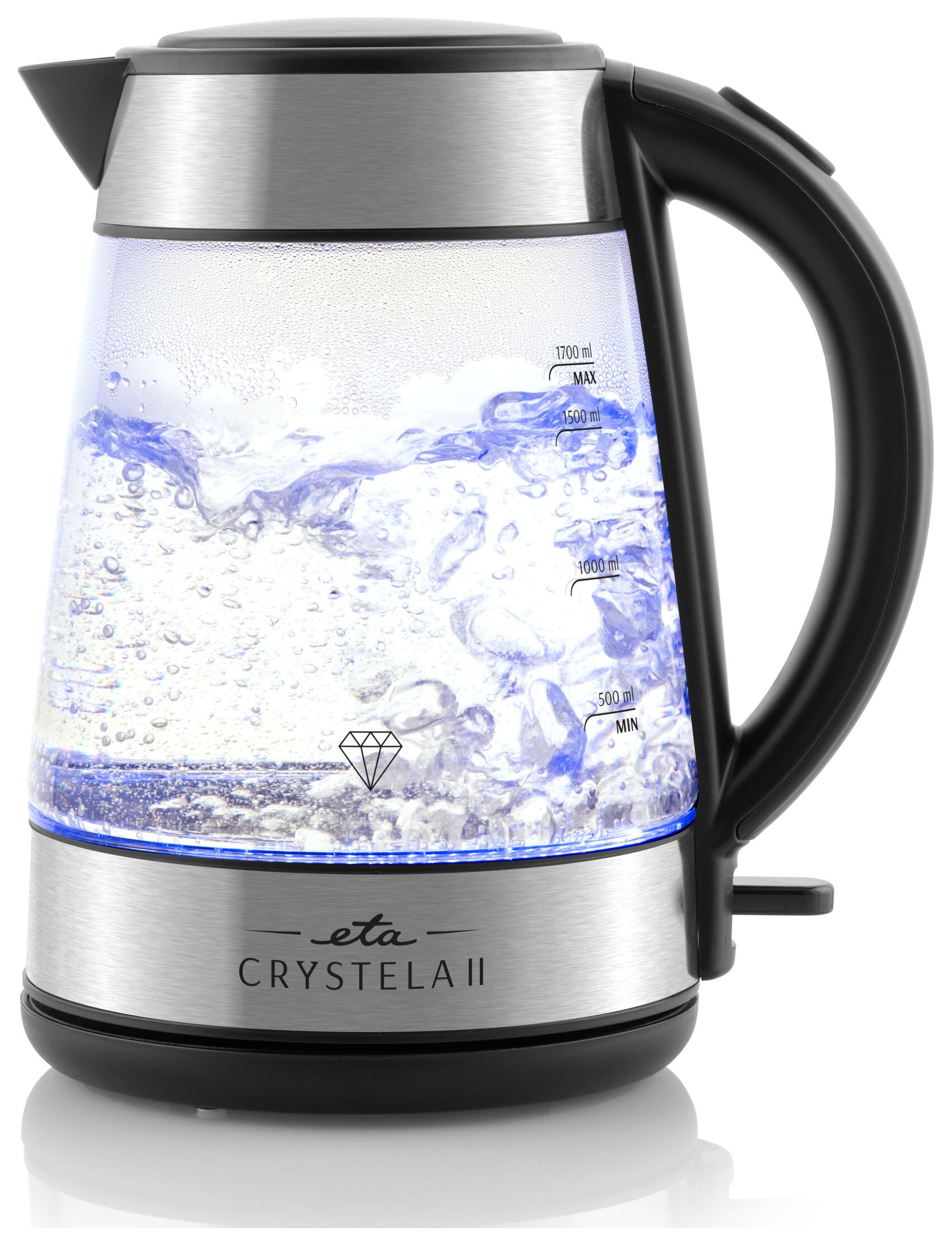 Crystela II 1,7 l Wasserkocher 2200 W (Schwarz, Edelstahl, Transparent)