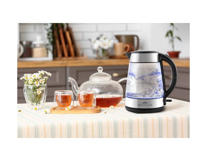 Der elegante ETA Crystela II 1,7-Liter-Wasserkocher aus Glas ist nicht nur funktional, sondern auch ein stilvolles Element für Ihre Küche. Dank der Leistung von 2.200 W ist das kochende Wasser in kurzer Zeit fertig und die Innenbeleuchtung während des Kochvorgangs sorgt für einen angenehmen optischen Effekt, der jedem direkt ins Auge fällt.