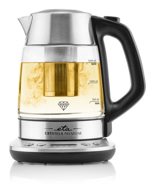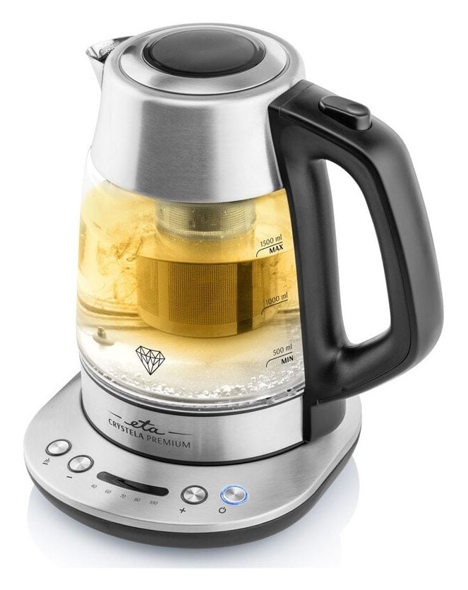 Eta ETA915390000, 1,5 l, 2200 W, Schwarz, Edelstahl, Transparent, Glas, Edelstahl, Regelbare Temperatur, Wasserstandsanzeige