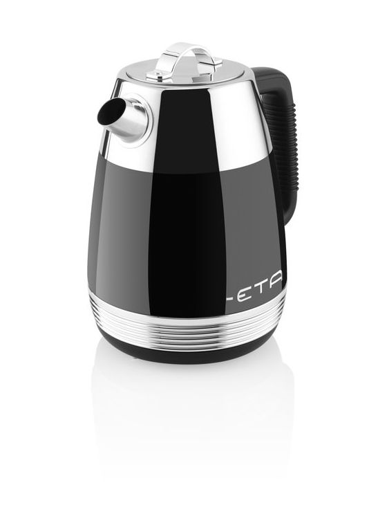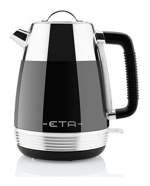 Der Wasserkocher aus Edelstahl ETA Storio mit Volumen 1,7 l im eleganten schwarzen Retro-Design ist mit einer Thermosicherung, einer automatische Abschaltung beim Erreichen des Siedepunkts, einem Kontakt-System STRIX und einer Lichtsignalisierung des Betriebs ausgestattet.