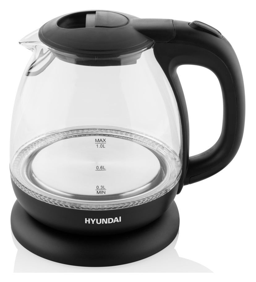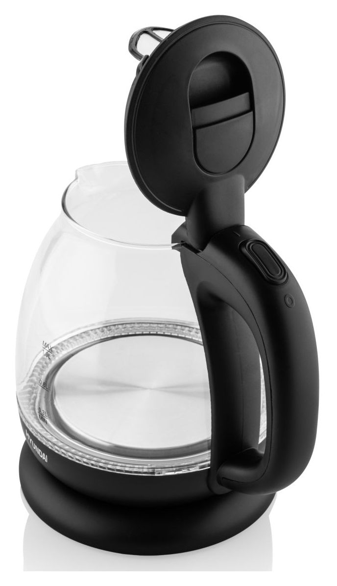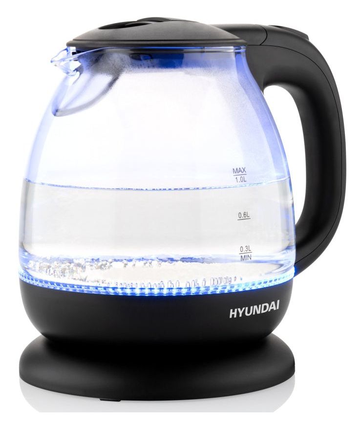 Der Hyundai HYUVK101 mit einer Leistung von 1100 W ist ein eleganter Wasserkocher in einem stilvollen Glas-Design und bringt mit interner Beleuchtung ein unkonventionelles Element in kochendes Wasser.