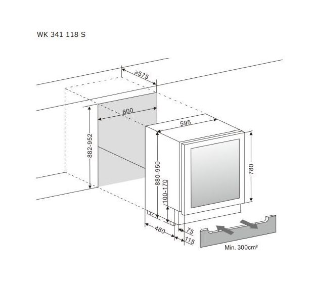WK341118S Weinkühler Freistehend EEK: F 2 Zonen 52 Flasche(n)