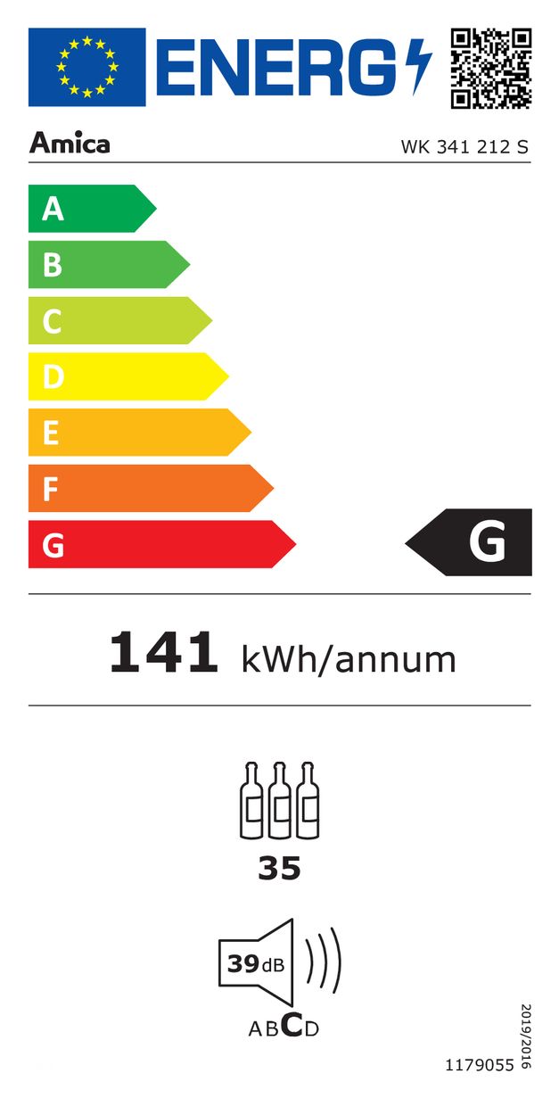 WK341212S Weinkühler Integriert EEK: G 2 Zonen 35 Flasche(n)