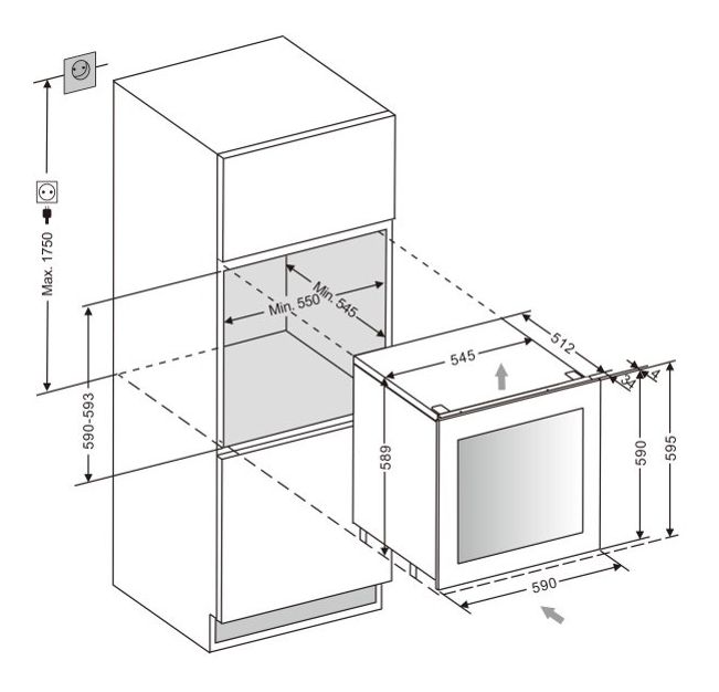 WK341215S Weinkühler Integriert EEK: F 2 Zonen 26 Flasche(n)
