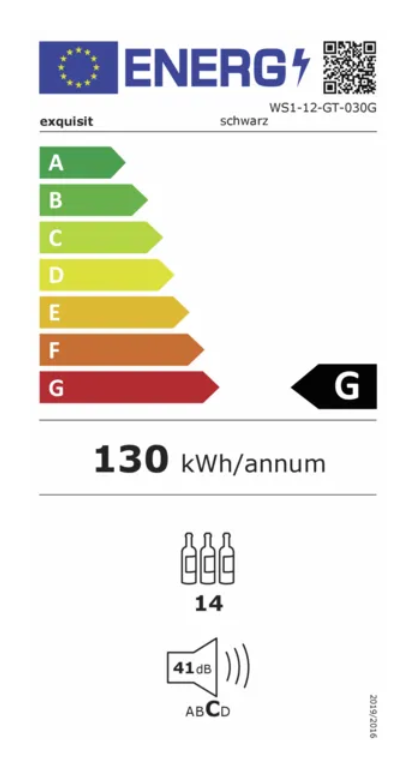 WS1-12-GT-030G Weinkühler Freistehend EEK: G 14 Flasche(n)
