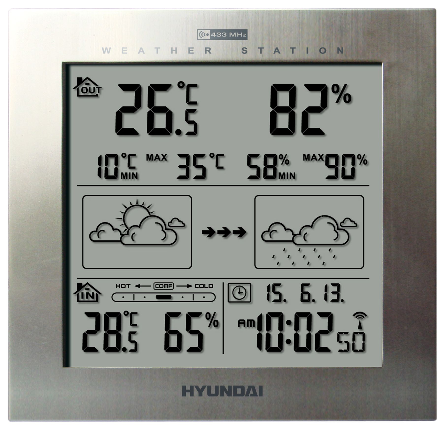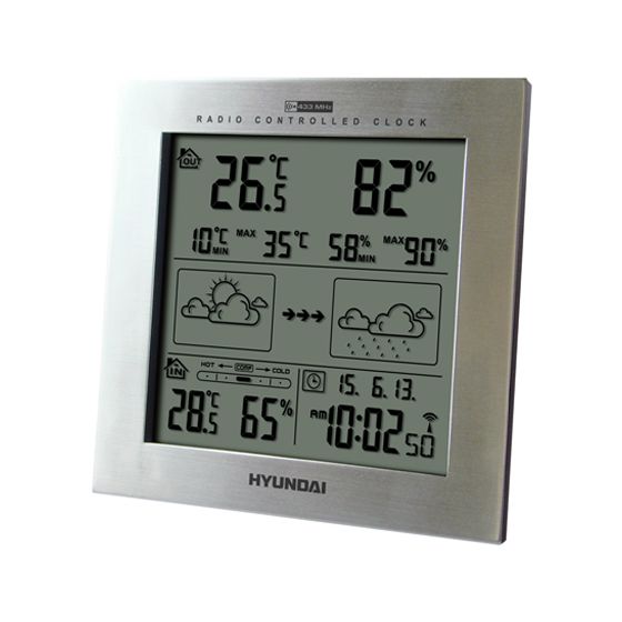 Hyundai WS 2244 M, Silber, Innen-Thermometer, Außen-Thermometer, Thermometer, Thermometer, 20 - 99%, 20 - 99%