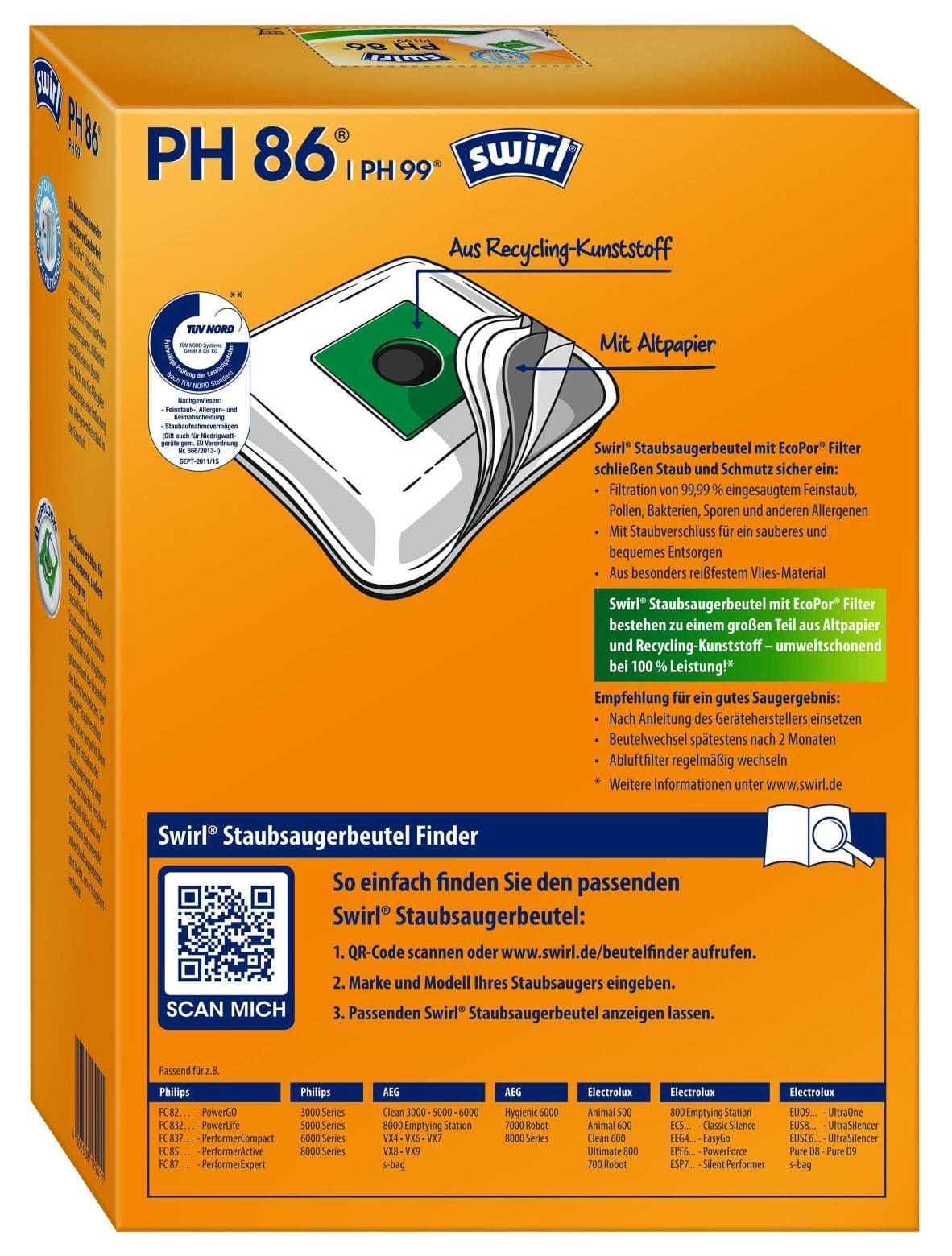 Bei Swirl® Staubsaugerbeuteln in MicroPor® Plus-Qualität folgt die Optik der Funktion. Die abgerundeten Ecken gewährleisten eine bessere Passgenauigkeit des Beutels und eine optimale Ausnutzung des Staubraums im Sauger.