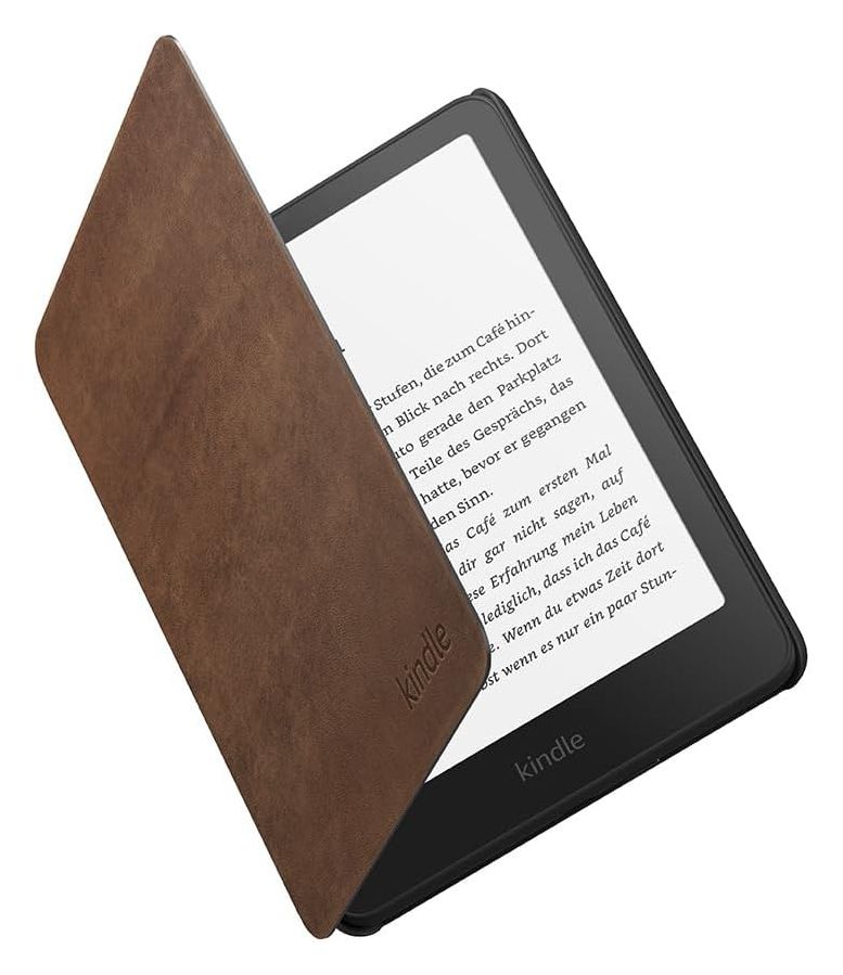 Hülle für Amazon Kindle Paperwhite und Amazon Kindle Colorsoft, Leichte und wasserfeste faltbare Schutzhülle, Premiumleder, Walnussbraun