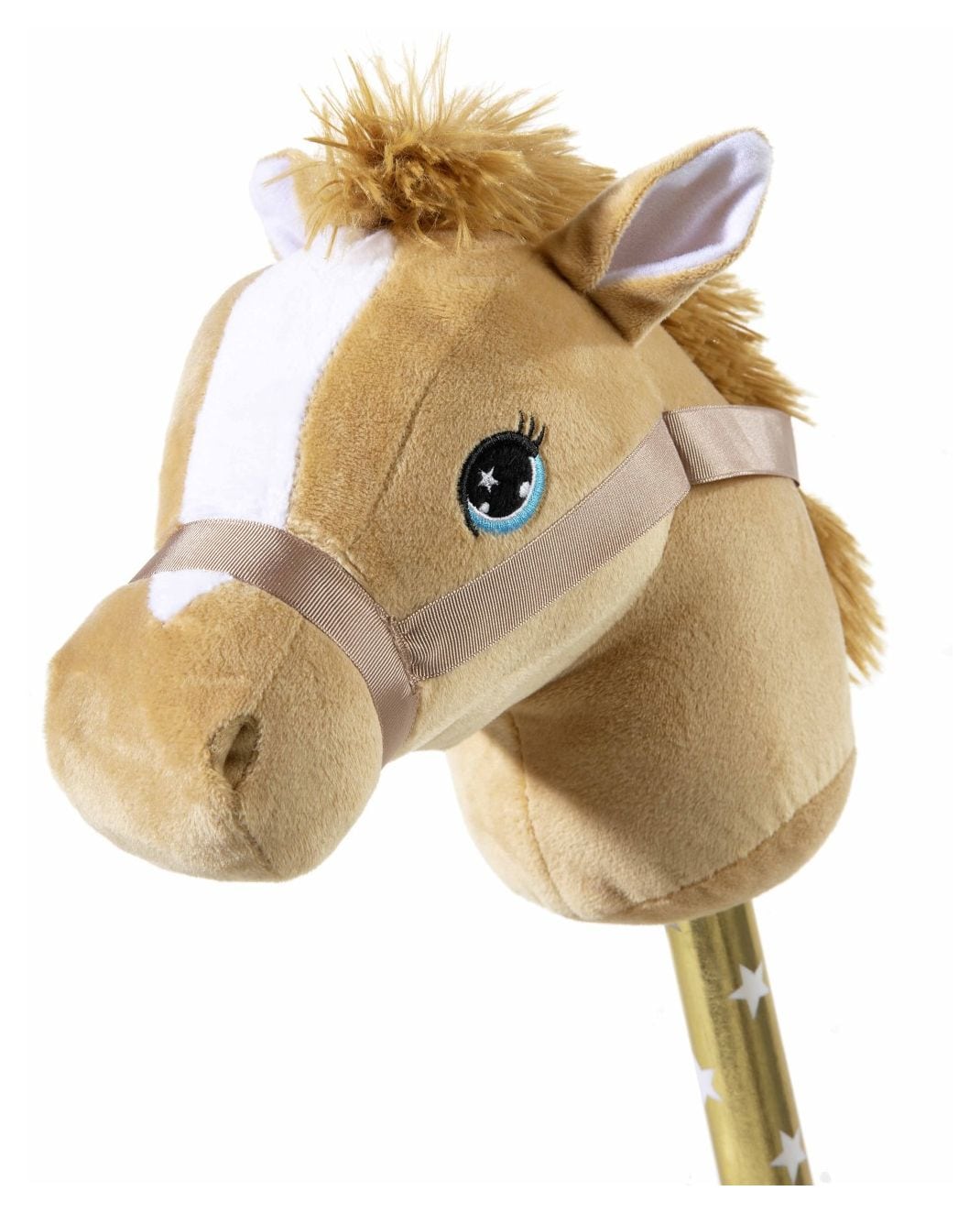 Unser hellbraunes Steckenpferd macht mit seinen glitzernden Augen und der braunen Mähne einen putzigen Eindruck. Das angebrachte Zaumzeug ist aus sicherheitsgründen hinten mit Klettverschluss, damit hier auch nichts passieren kann. Mit seinem goldenen und mit Sternen übersähten Stecken und dem kuschelweichen Kopf ist unser Pferd der optimale Spielgefährte.