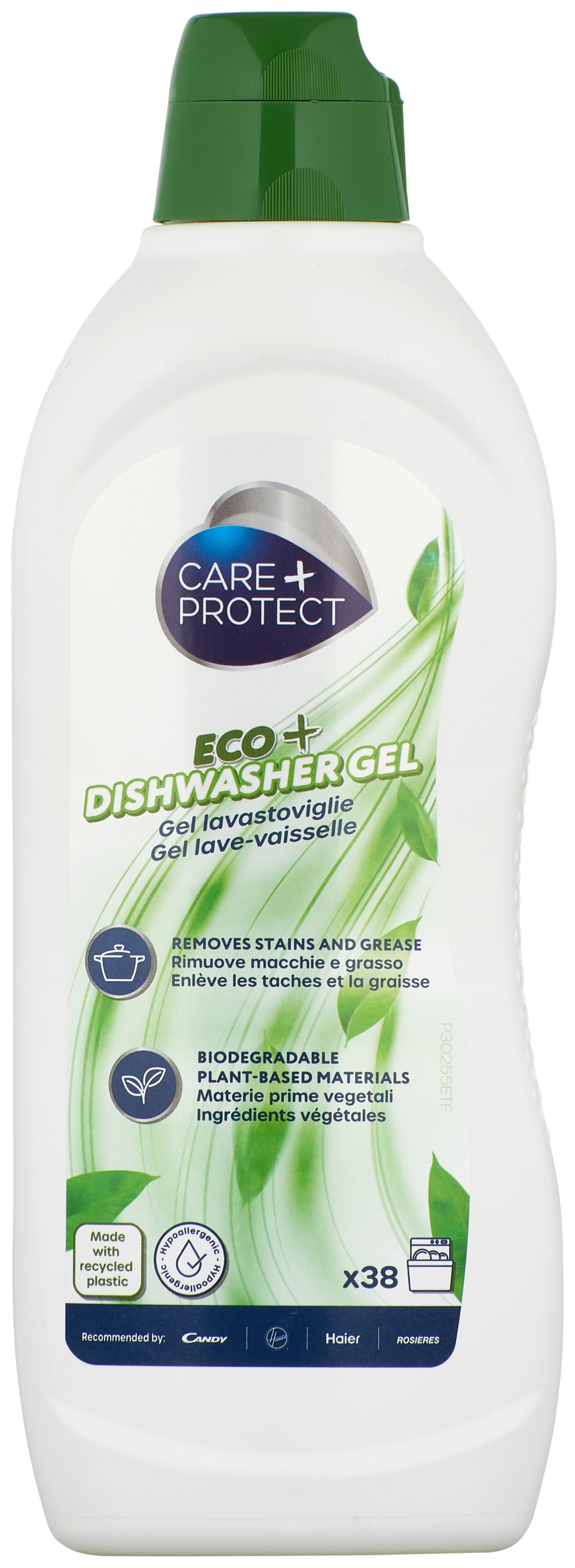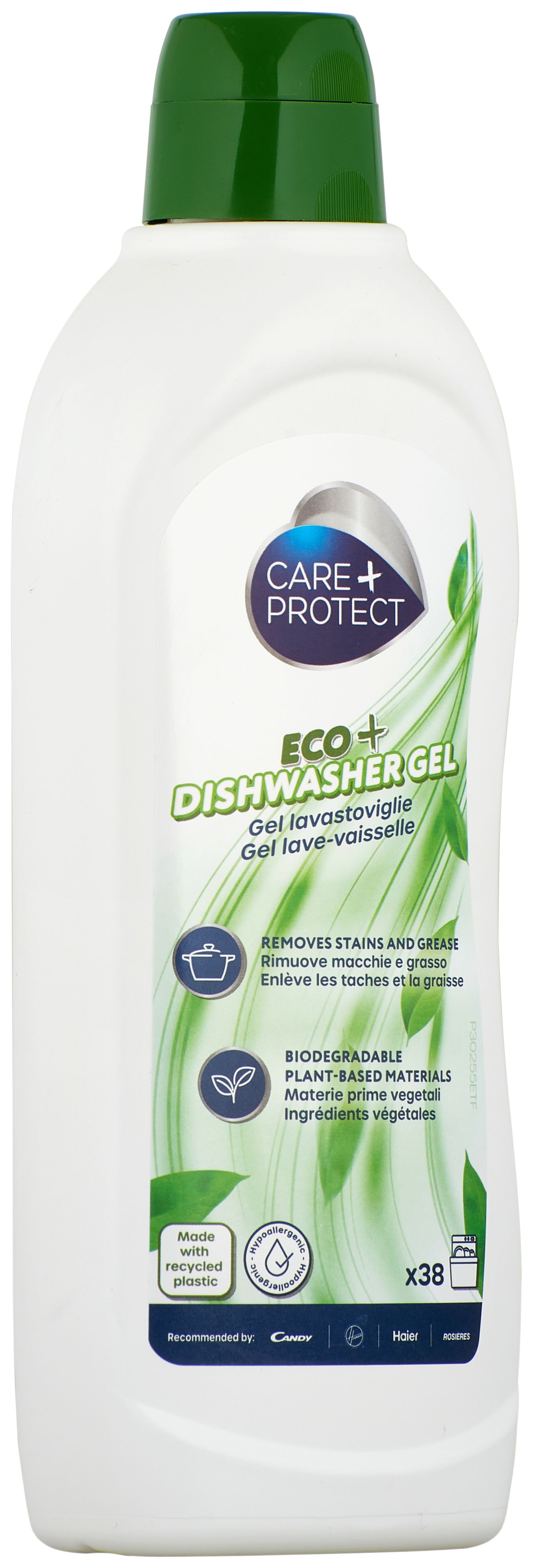 Care + Protect CPP650DWE. Produkttyp: Geschirrspülmittel + Klarspüler + Salz, Produktform: Gel, Volumen (ml): 650 ml. Gewicht: 650 g. Menge pro Packung: 1 Stück(e). Ursprungsland: Italien